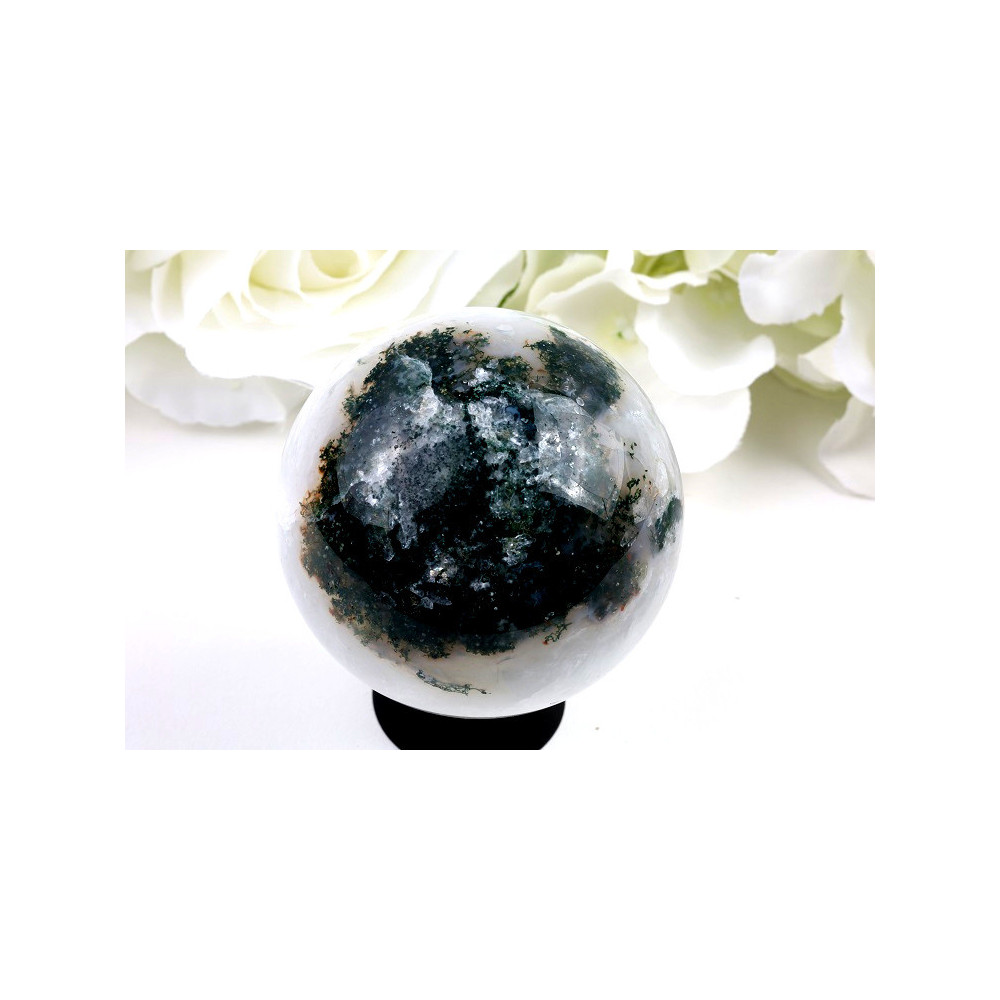 Každá koule z mechového achátu je zcela unikátní – drobné odchylky v barvě, struktuře a kresbě jsou přirozenou součástí kouzla tohoto minerálu. Pro údržbu stačí jemně utřít vlhkým hadříkem a chránit před prudkým nárazem.