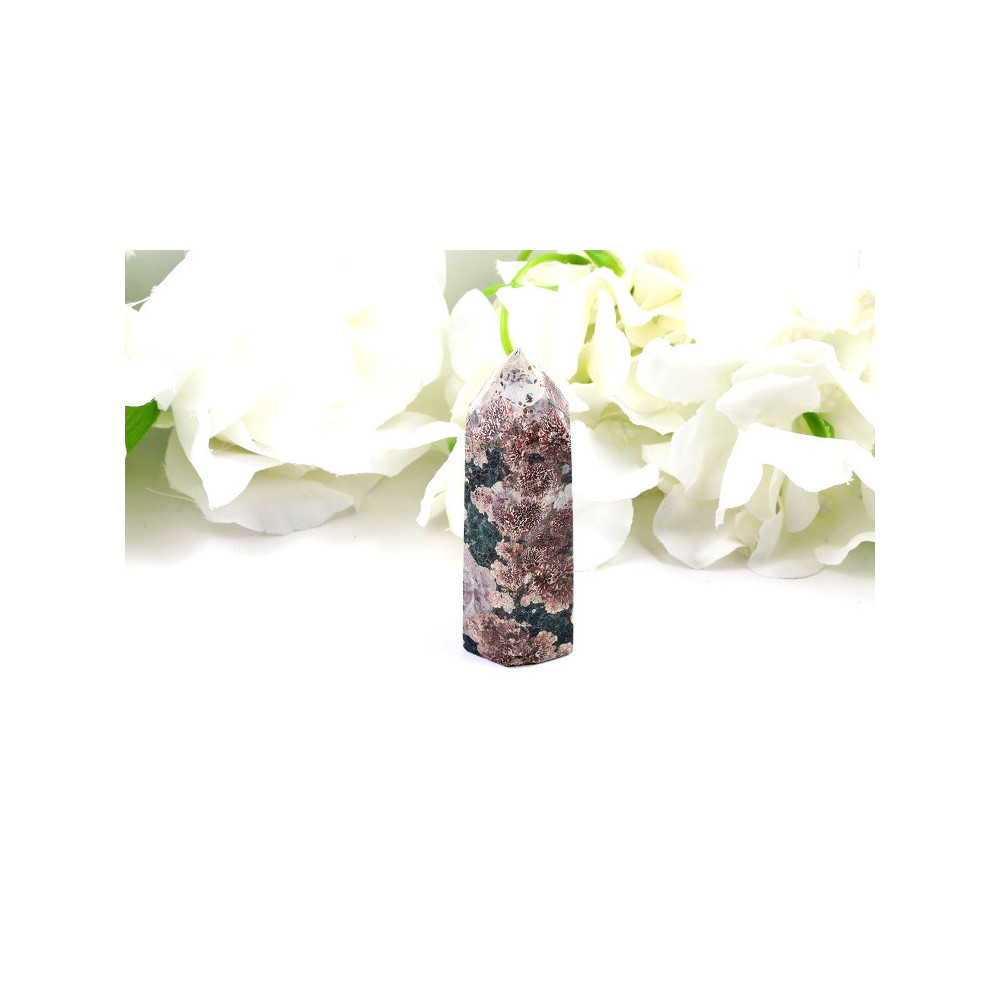 Jedinečný obelisk ze zeleného květinového achátu - přírodní krása pro harmonii a klid