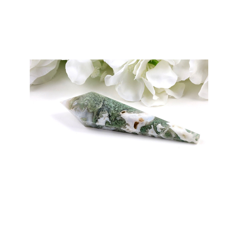 Tato exkluzivní hůlka je vytvořena z pravého brazilského mechového achátu s charakteristickými zelenobílými vzory, které připomínají jemné rostlinné útvary nebo mechové krajiny. Každý vzorek je příroda vytvořila jedinečně, což z této hůlky činí naprosto originální kus. Kámen má dokonale vybroušený tvar špice s vysoce leštěným povrchem, který krásně odráží světlo a zvýrazňuje jeho přírodní krásu. Štíhlá protáhlá forma hůlky příjemně padne do ruky a je ideální pro energetickou práci i dekorativní účely.
