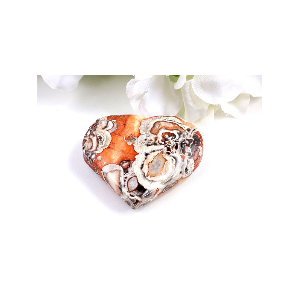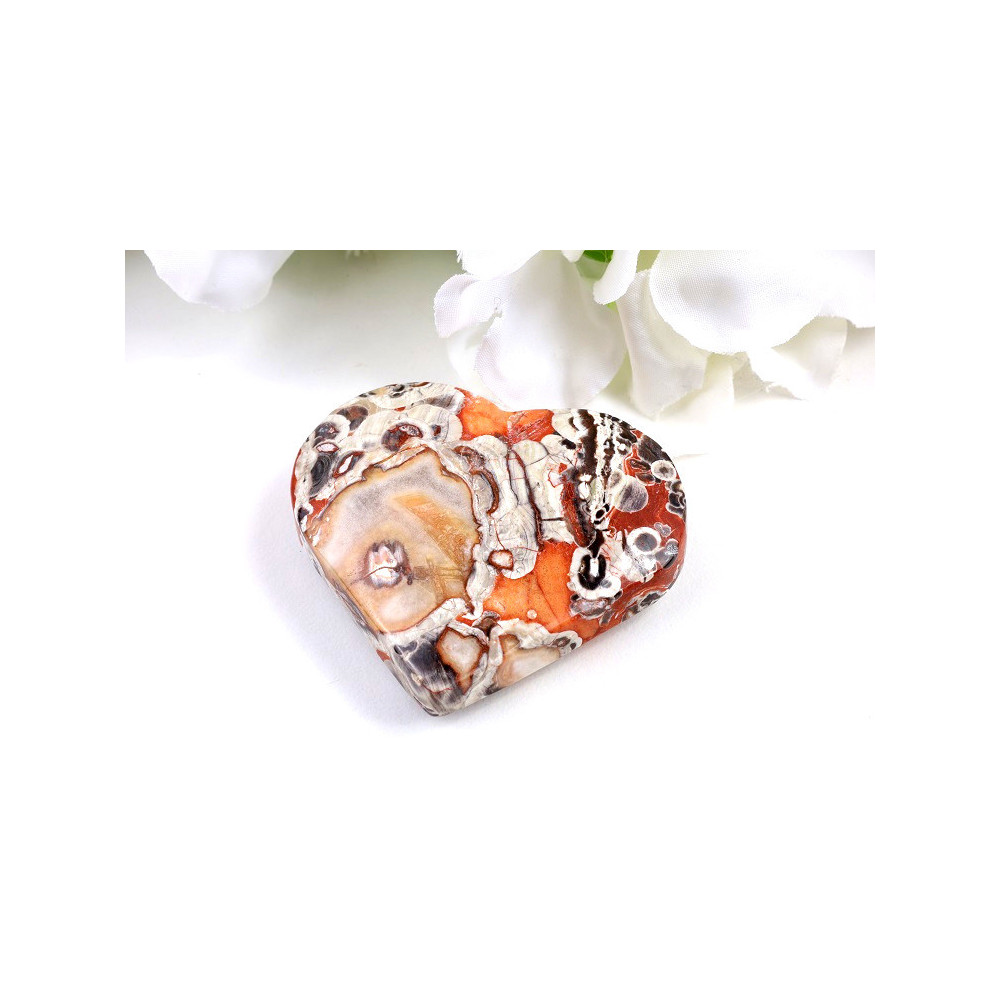 Tento nádherný minerál spojuje v sobě symboliku lásky reprezentovanou tvarem srdce s mocí penízkového achátu, který je od pradávna považován za kámen přitahující prosperitu a hojnost. Jde o unikátní kus, který potěší každého milovníka přírodních minerálů svou jedinečnou kresbou a energií.