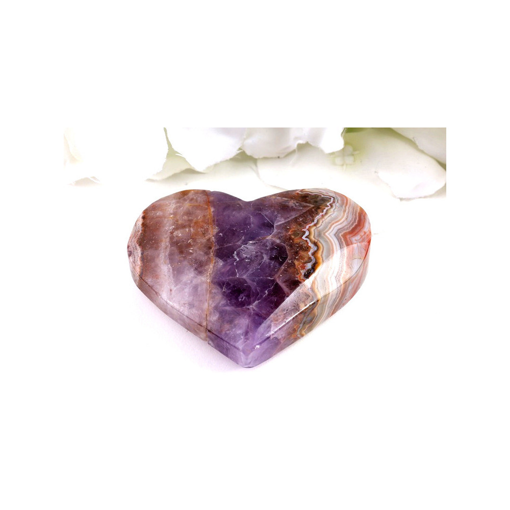 Objevte krásu tohoto jedinečného srdce z ametystu achátu, které v sobě spojuje sílu duchovního ametystu s ochranou stabilizujícího achátu. Tento vzácný kámen o rozměrech 65x55x18 mm přináší do vašeho života harmonii, klid a pozitivní energii.
