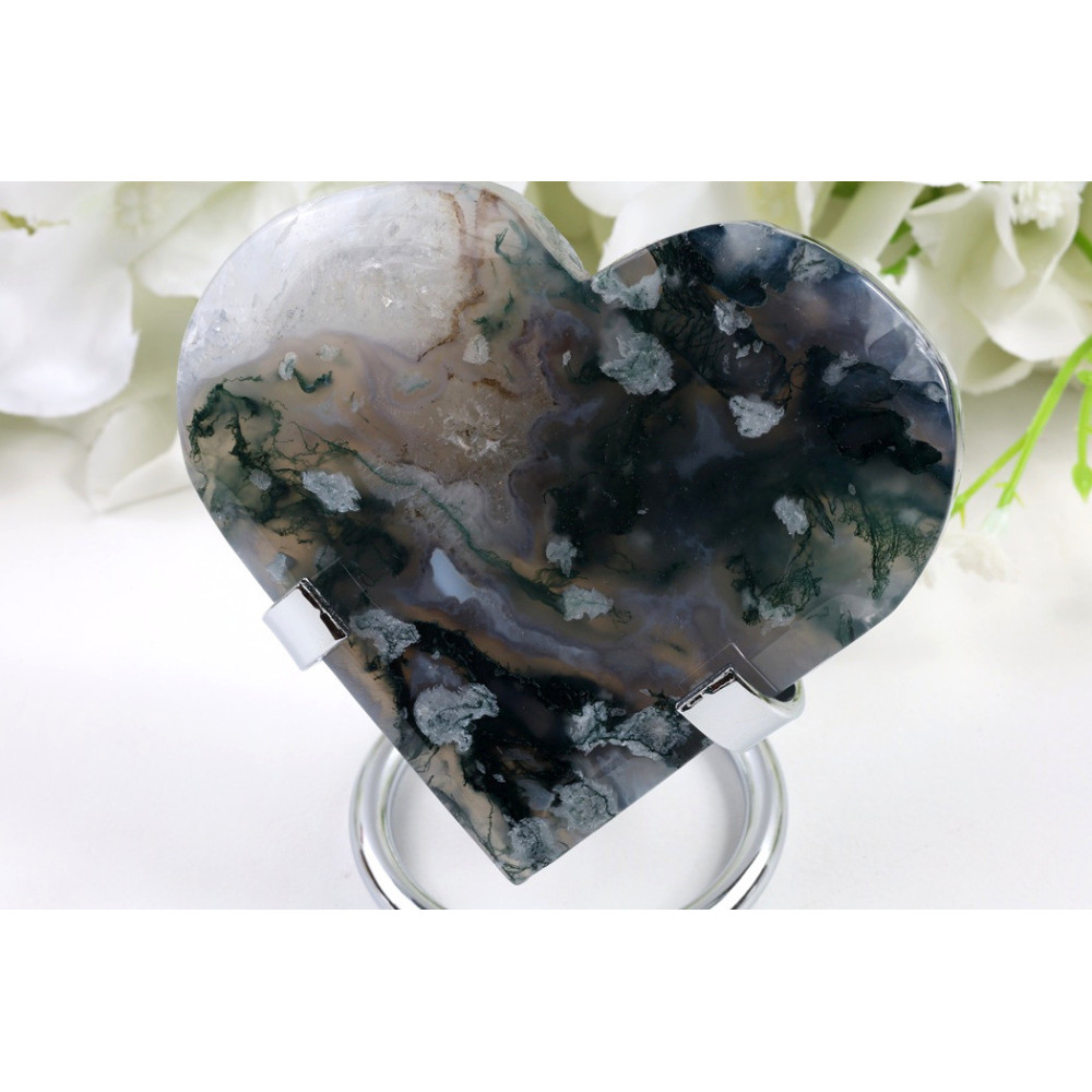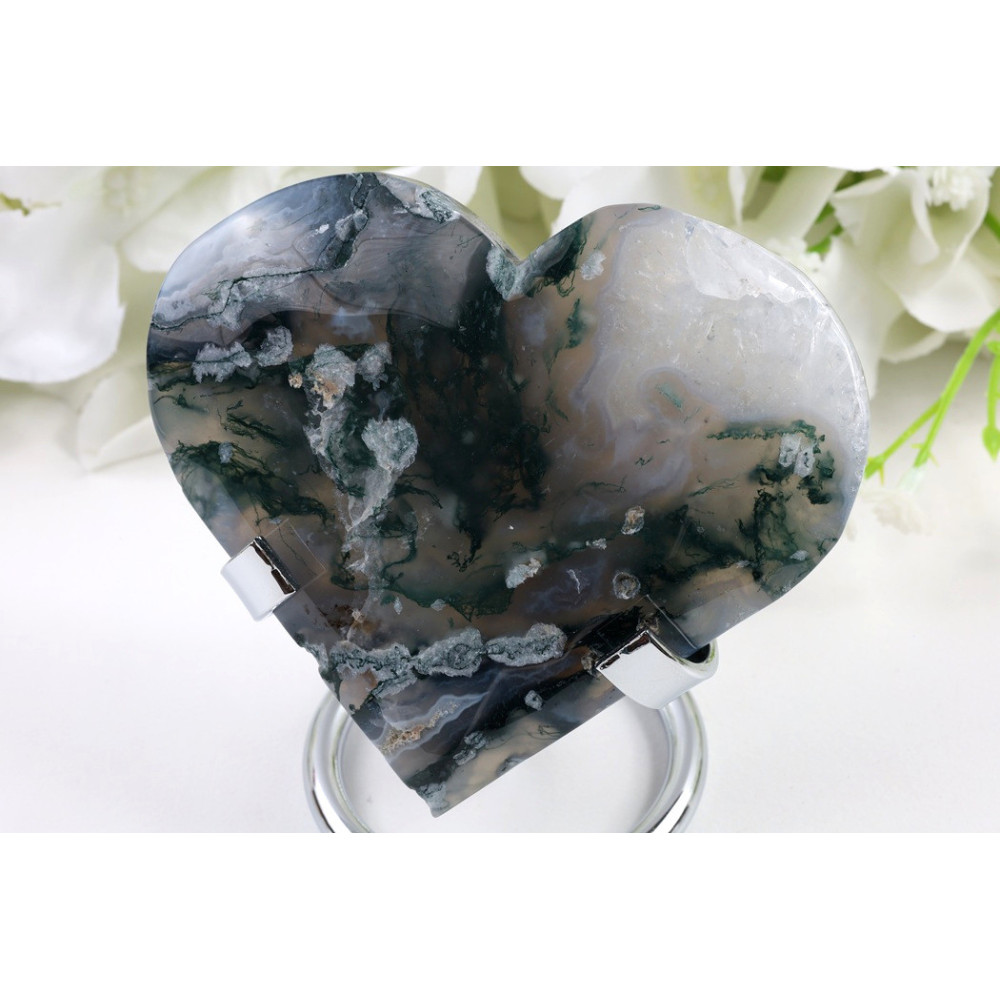 Mechový achát ve tvaru srdce - přírodní mistrovské dílo plné harmonie