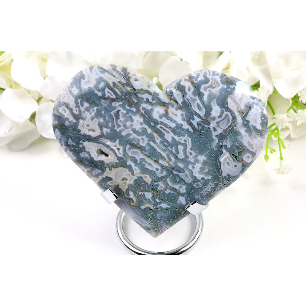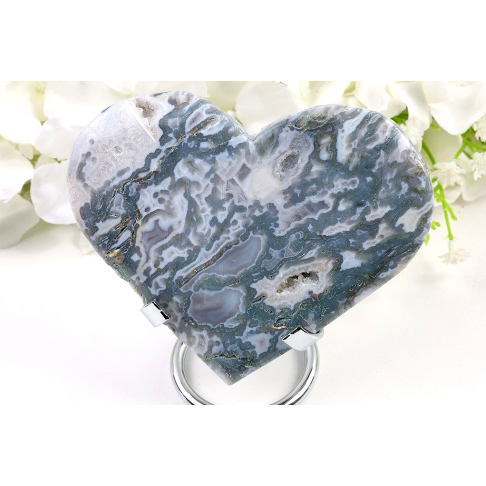 Nenechte si ujít tento jedinečný kus přírody ve tvaru srdce. Mechový achát s fascinujícími zelenými kresbami je skvělým doplňkem vaší sbírky nebo dárkem, který potěší každého milovníka minerálů. Objednejte si jej ještě dnes a vneste kousek přírody do svého domova.