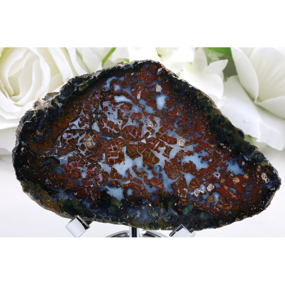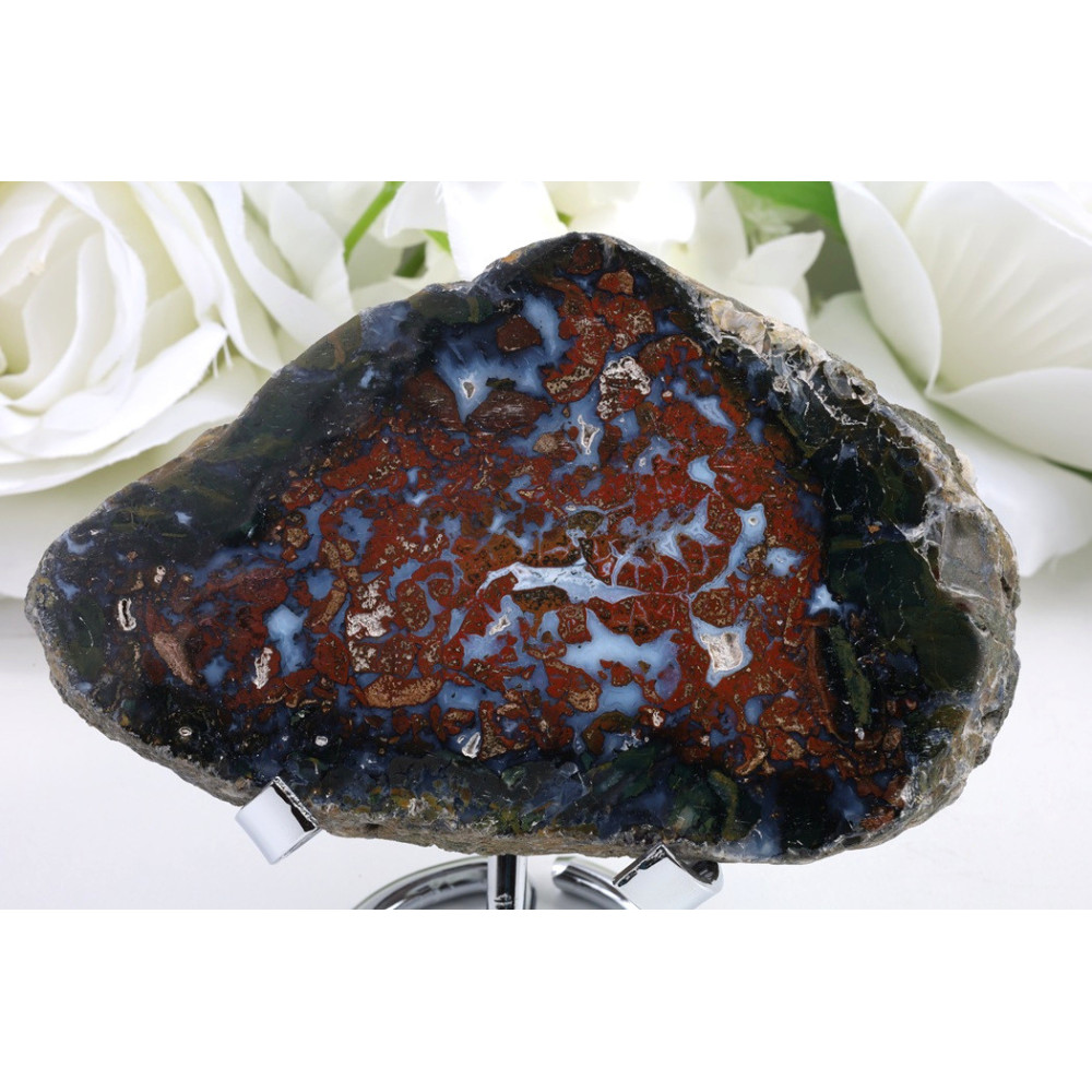 Objevte krásu přírodního umění s tímto jedinečným plátkem Purbalingga achátu. Jeho výrazné zbarvení a unikátní vzory z něj činí skvělou volbu pro vaši sbírku nebo jako dekorativní prvek, který přinese harmonii a přírodní estetiku do vašeho prostoru. Tento originální kus z Indonésie je k dispozici právě teď!