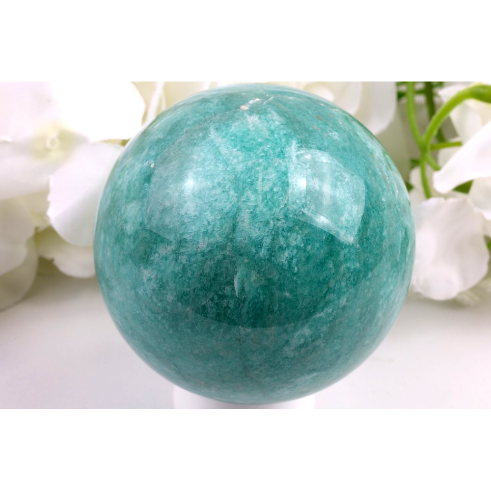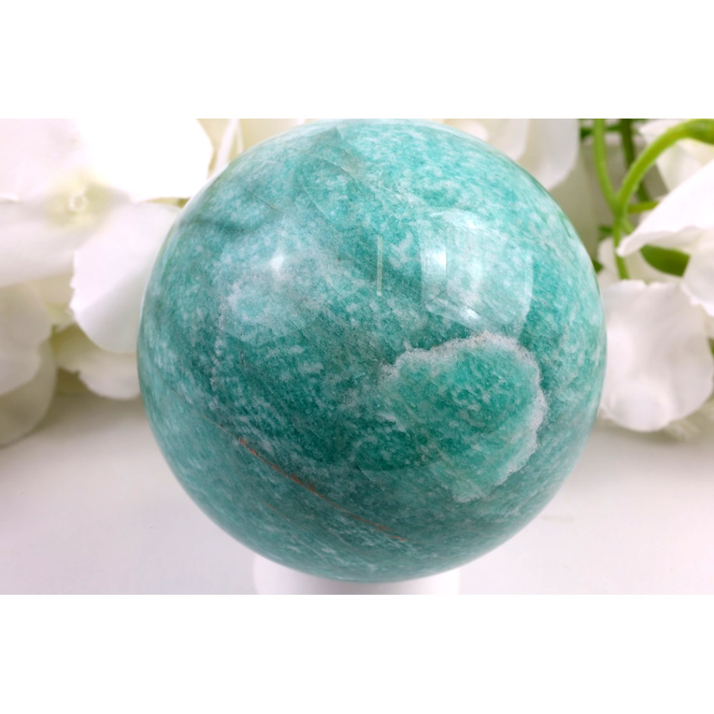 Ponořte se do uklidňujících tónů amazonitu a dopřejte si kousek harmonie s touto nádhernou koulí.
