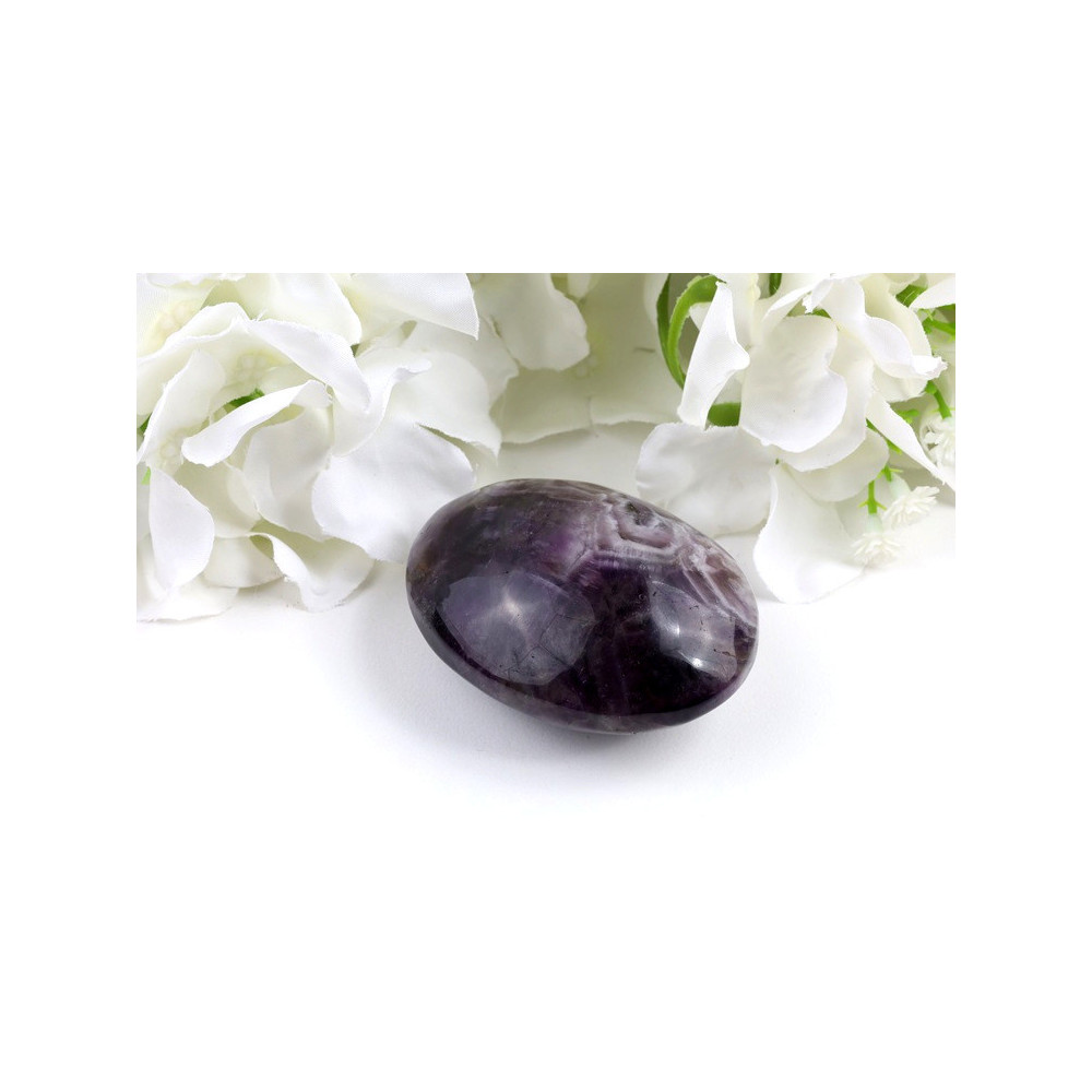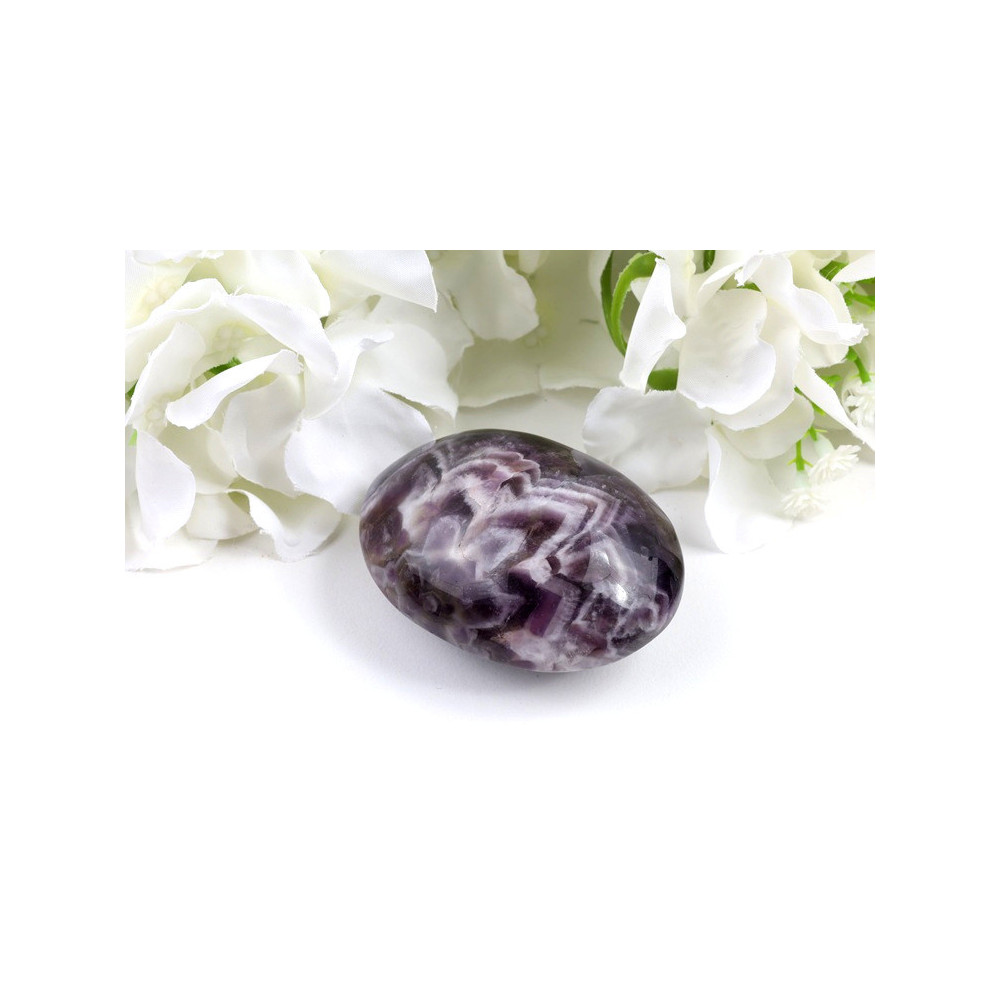 Tato nádherná Dream ametyst hmatka okouzlí svým charakteristickým chevronovým vzorem, který vytváří jedinečnou kombinaci intenzivních fialových odstínů a bílých pruhů. Kámen je precizně vybroušen do ergonomického oválného tvaru, který dokonale padne do dlaně a poskytuje příjemný pocit při meditaci nebo relaxaci. Povrch je pečlivě vyleštěn do vysokého lesku, který zvýrazňuje hloubku barev a zdůrazňuje přirozený vzhled chevronových pásů. Každý kousek je jedinečný originálem z brazilských nalezišť, což z něj činí skutečně výjimečný doplněk vaší sbírky minerálů.