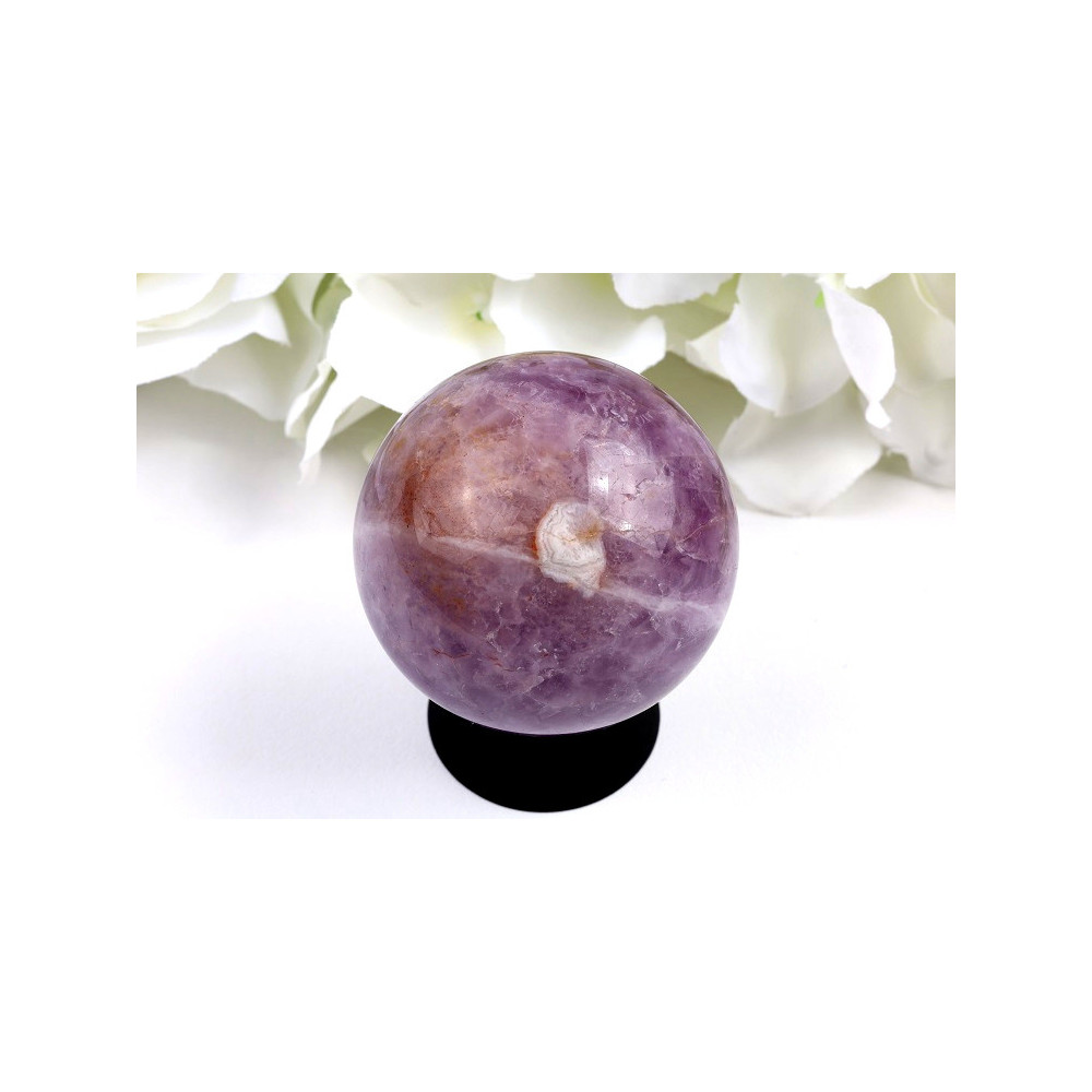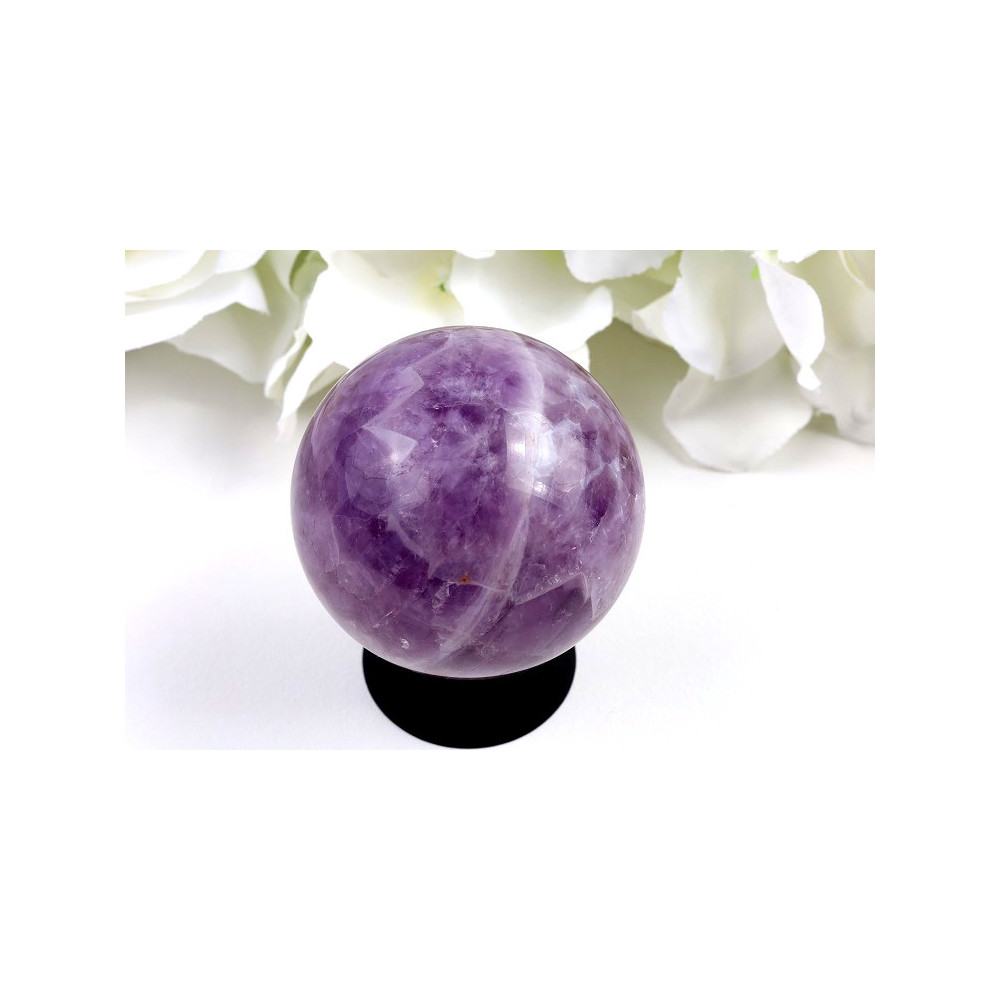 Dream ametyst je ojedinělá odrůda ametystu, která se vyznačuje svou charakteristickou kresbou a barevností. Tato koule kombinuje jemné fialové a bílé tóny s mléčnými zónami, které vytvářejí fascinující vzory připomínající sny a vize. Dokonale vyleštěný povrch odráží světlo a zvýrazňuje jedinečnou kresbu kamene, která je u každého kusu naprosto originální.