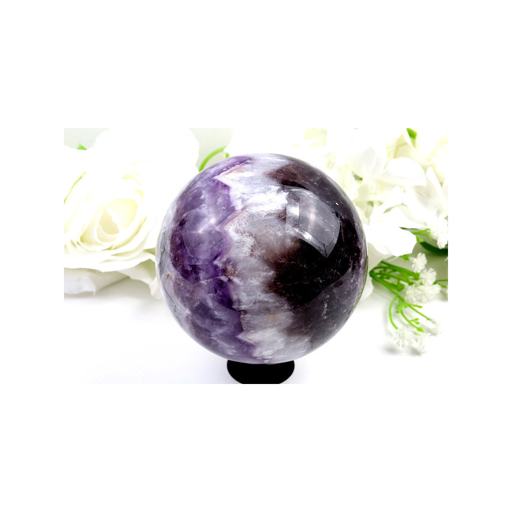 Přinášíme vám nádhernou kouli z dream ametystu z brazilských nalezišť. Tento jedinečný kámen okouzlí svým jemným fialovým odstínem protkávaným bílými až krémovými pruhy, které vytvářejí fascinující mramorový vzor. Dream ametyst je varianta klasického ametystu, která v sobě harmonicky spojuje fialové tóny ametystu s jemnými pruhy mléčného křemene.