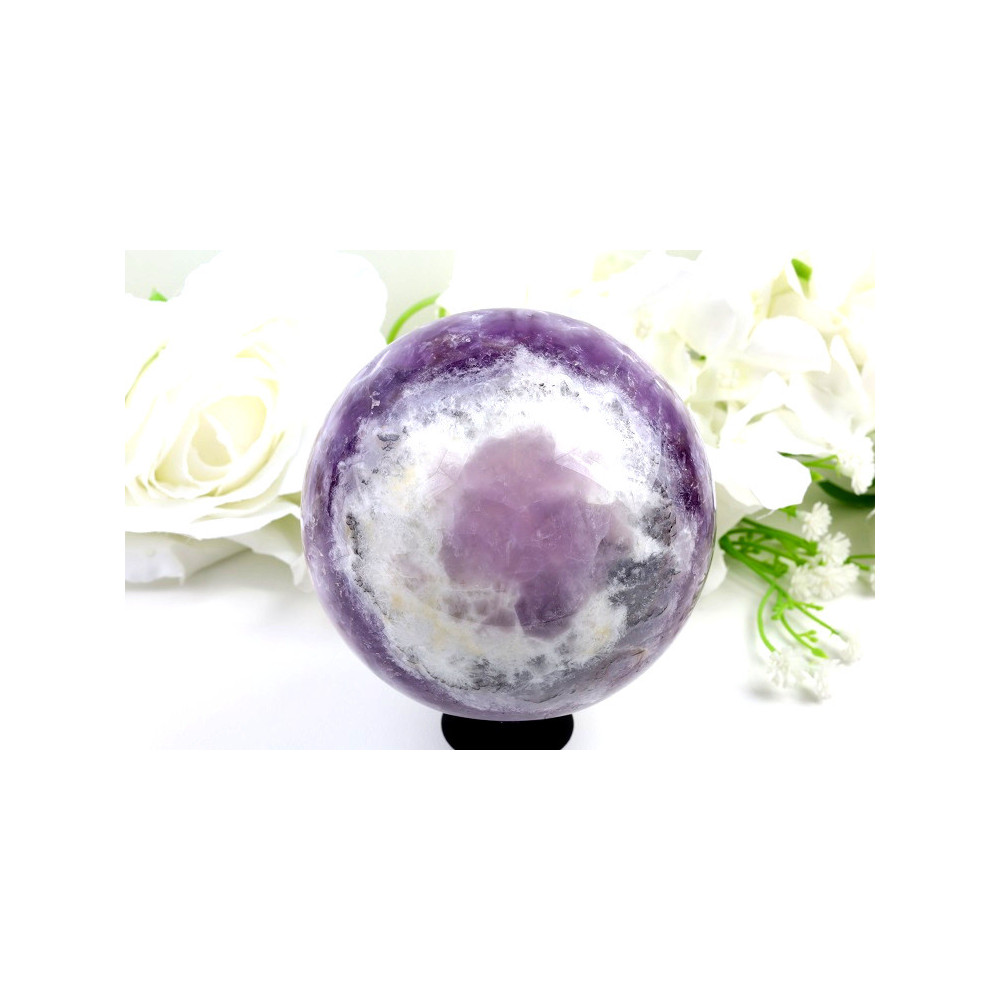 Tato leštěná koule o průměru 97 mm zaujme každého milovníka minerálů svým dokonalým zpracováním a přírodní krásou. Povrch je pečlivě vyleštěn do vysokého lesku, který zvýrazňuje jedinečnou kresbu kamene a hru barev. Fialové odstíny se střídají s bílými zónami a vytvářejí tak jedinečný vzor, který je u každého kusu odlišný.