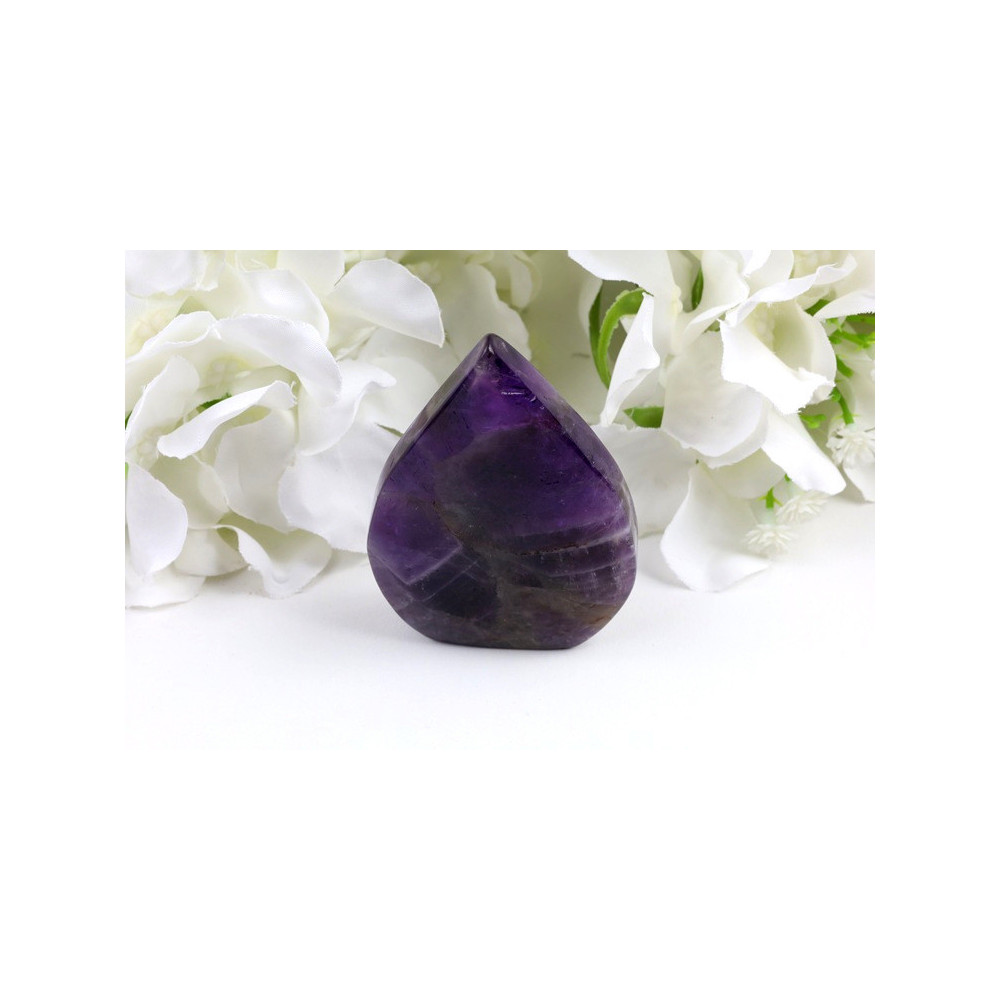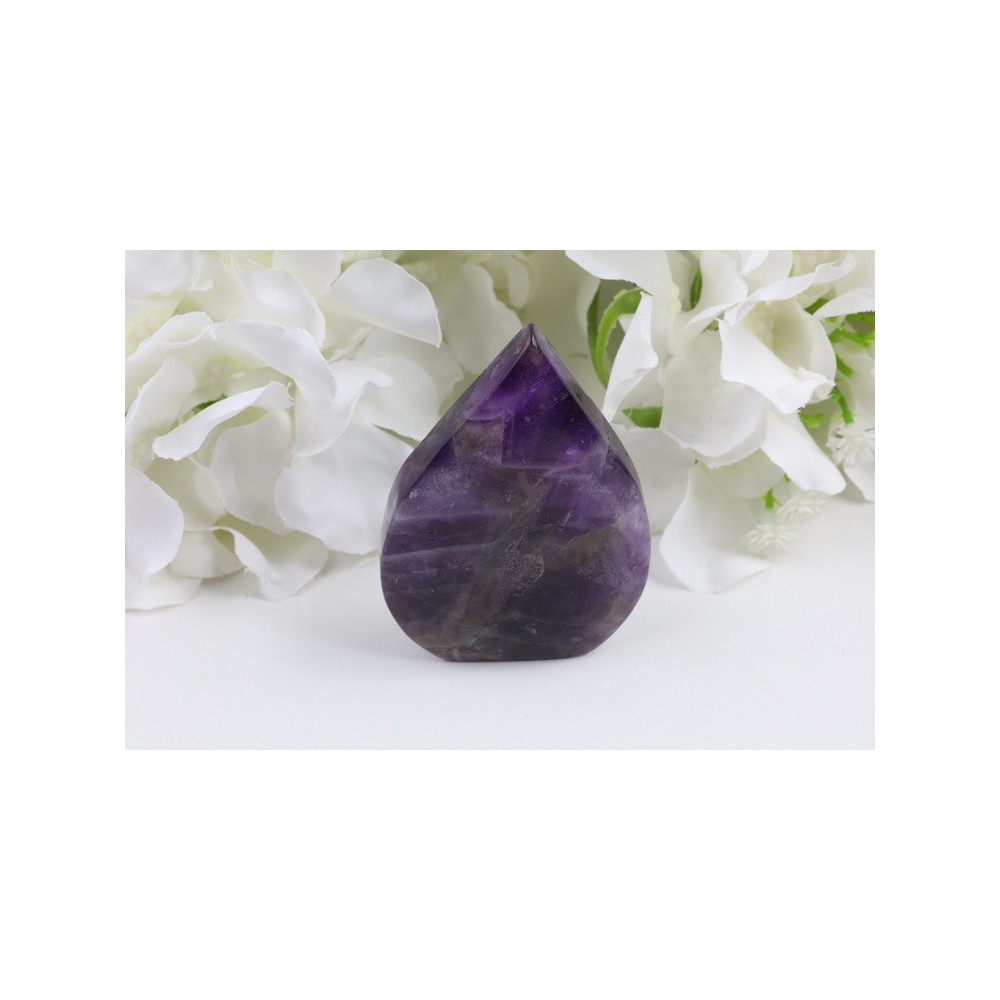 Tato nádherná špice Dream ametystu z Brazílie vás okamžitě uchvátí svým jedinečným vzhledem. Kámen se pyšní krásnými odstíny fialové barvy prokládané charakteristickými bílými pruhy, které vytvářejí typický chevron vzor. Povrch špice je pečlivě vyleštěn do vysokého lesku, který zvýrazňuje hloubku barevných přechodů a umožňuje světlu pronikat do struktury minerálu. Špice má elegantní protáhlý tvar s výrazným hrotem, který směřuje energii a vytváří silné energetické pole. Rozměry 72×48×17 mm činí z tohoto kusu ideální položku jak pro sběratele, tak pro praktické duchovní využití.