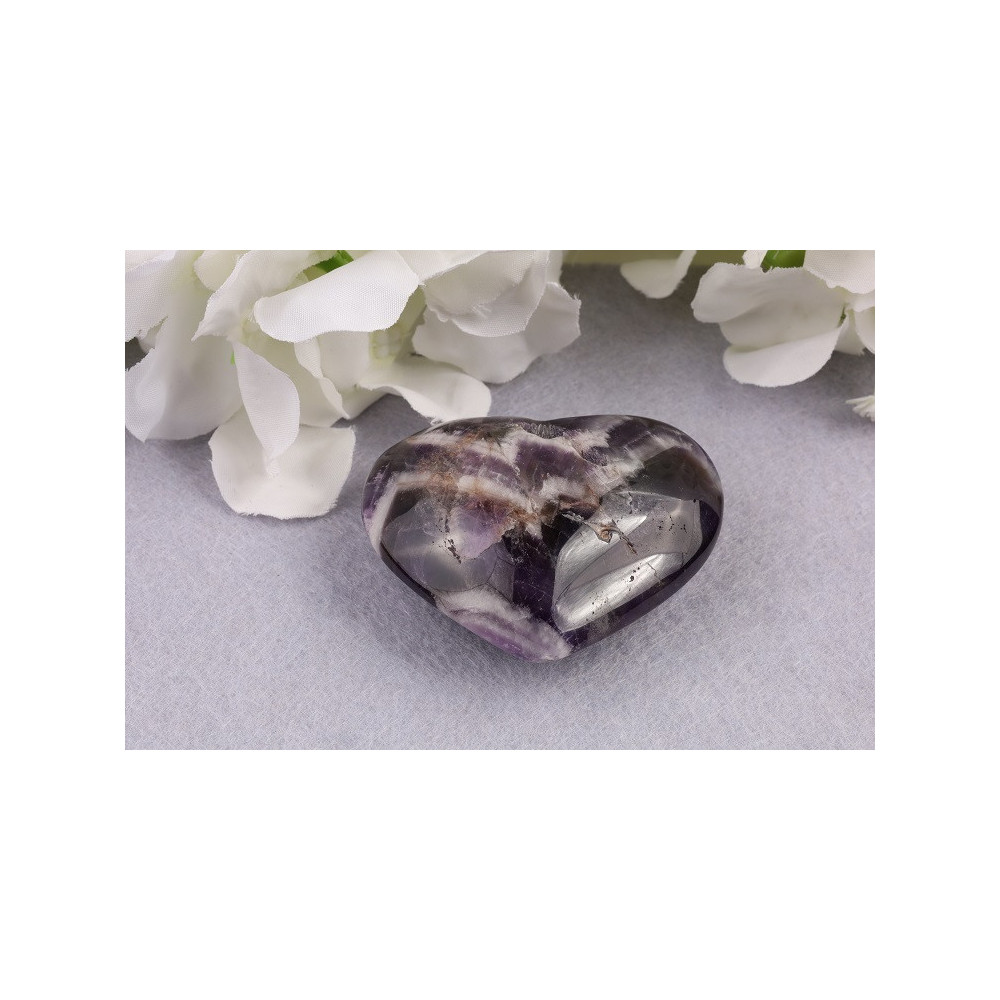 Toto nádherné ametystové srdce uchvátí svou jedinečnou krásou a jemnou energií. Kámen vyniká bohatou fialovou barvou, která se prolíná s jemnými bílými žilkami vytvářejícími fascinující mramorový vzor. Povrch srdce je pečlivě vyleštěn do vysokého lesku, který zdůrazňuje hloubku barevných přechodů a křišťálovou strukturu dream ametystu. Světlo se v leštěném povrchu krásně odráží a vytváří magickou hru odstínů od světle levandulové až po sytě fialovou. Tvar srdce je symbolicky naplněný a harmonicky proporcionální, s jemnými oblými liniemi. Kompaktní rozměry 48x58x23 mm a hmotnost 76 gramů činí z tohoto kusu ideálního společníka pro každodenní nošení v kapse nebo kabelce. Krásné bílé inkluze a jemné proužky dodávají každému srdci jedinečný charakter a přírodní autenticitu.
