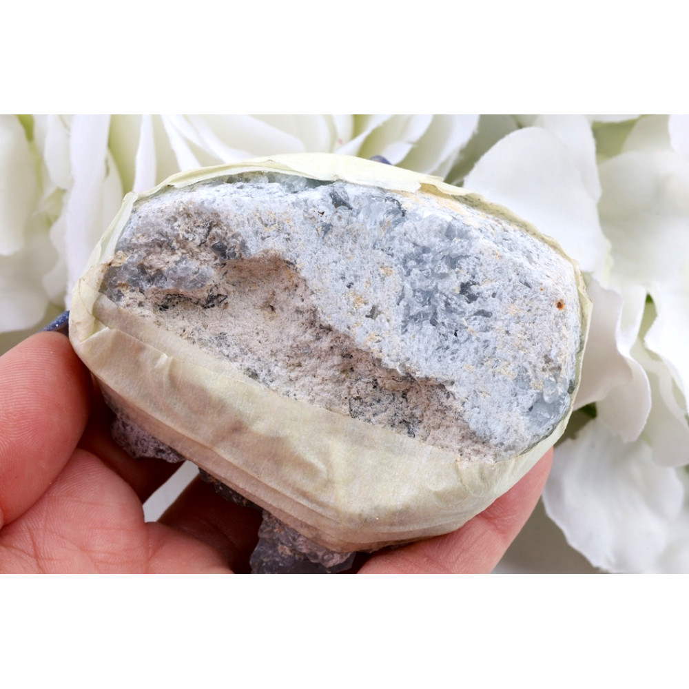 Nenechte si ujít tento jedinečný klenot přírody! Každá drúza celestýnu je originál, ručně vybraný s láskou a péčí. Co vidíte na fotografii, je přesně ten kus, který k Vám doputuje – jeho unikátní krásu si tak můžete prohlédnout do posledního detailu. Vneste do svého života klid a andělskou energii s tímto přírodním zázrakem.