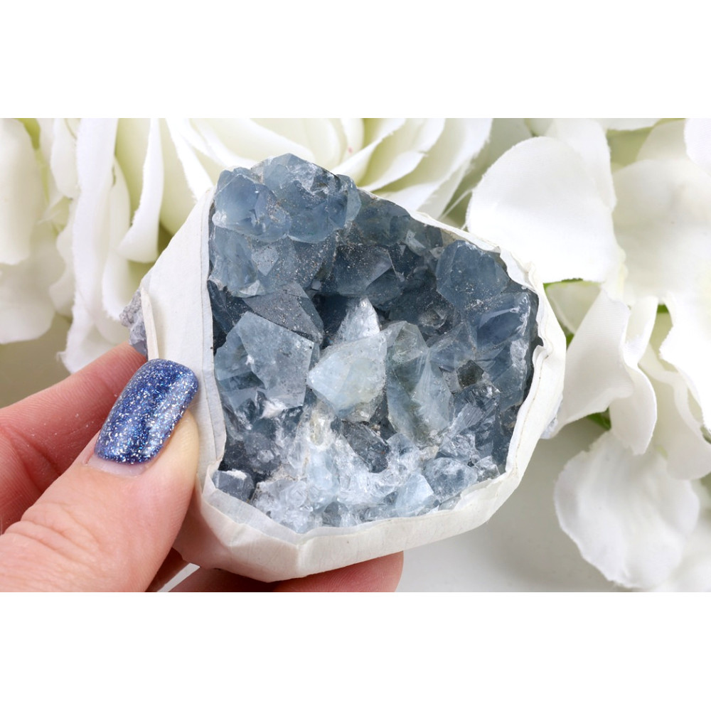 Nenechte si ujít tento jedinečný kousek nebeské krásy. Každá drúza celestýnu je přírodním originálem, ručně vybraným s láskou a pečlivostí. Fotografie, kterou vidíte, zobrazuje přesně ten kus, který se stane součástí vaší sbírky nebo interiéru. Přineste si domů kus klidu a harmonie s tímto nádherným darem z hlubin Země.