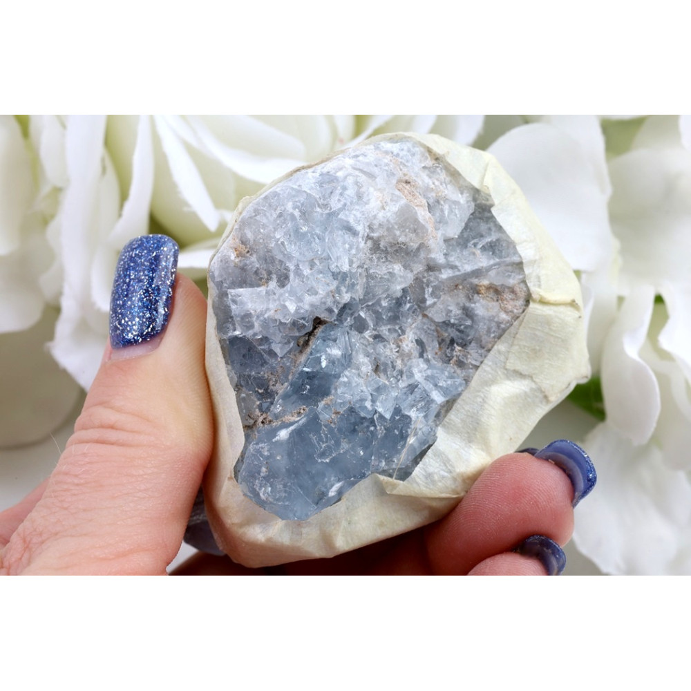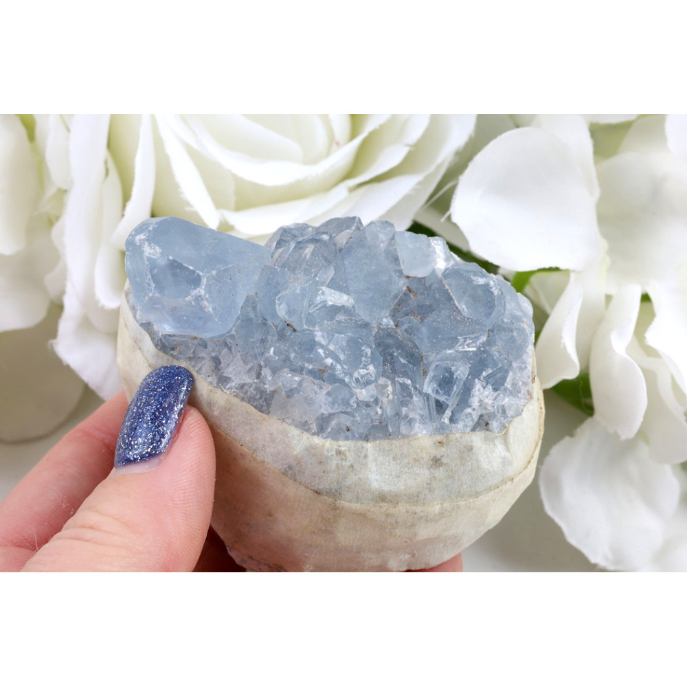 Přineste si domů kousek nebeského klidu a krásy s touto nádhernou drúzou celestýnu.