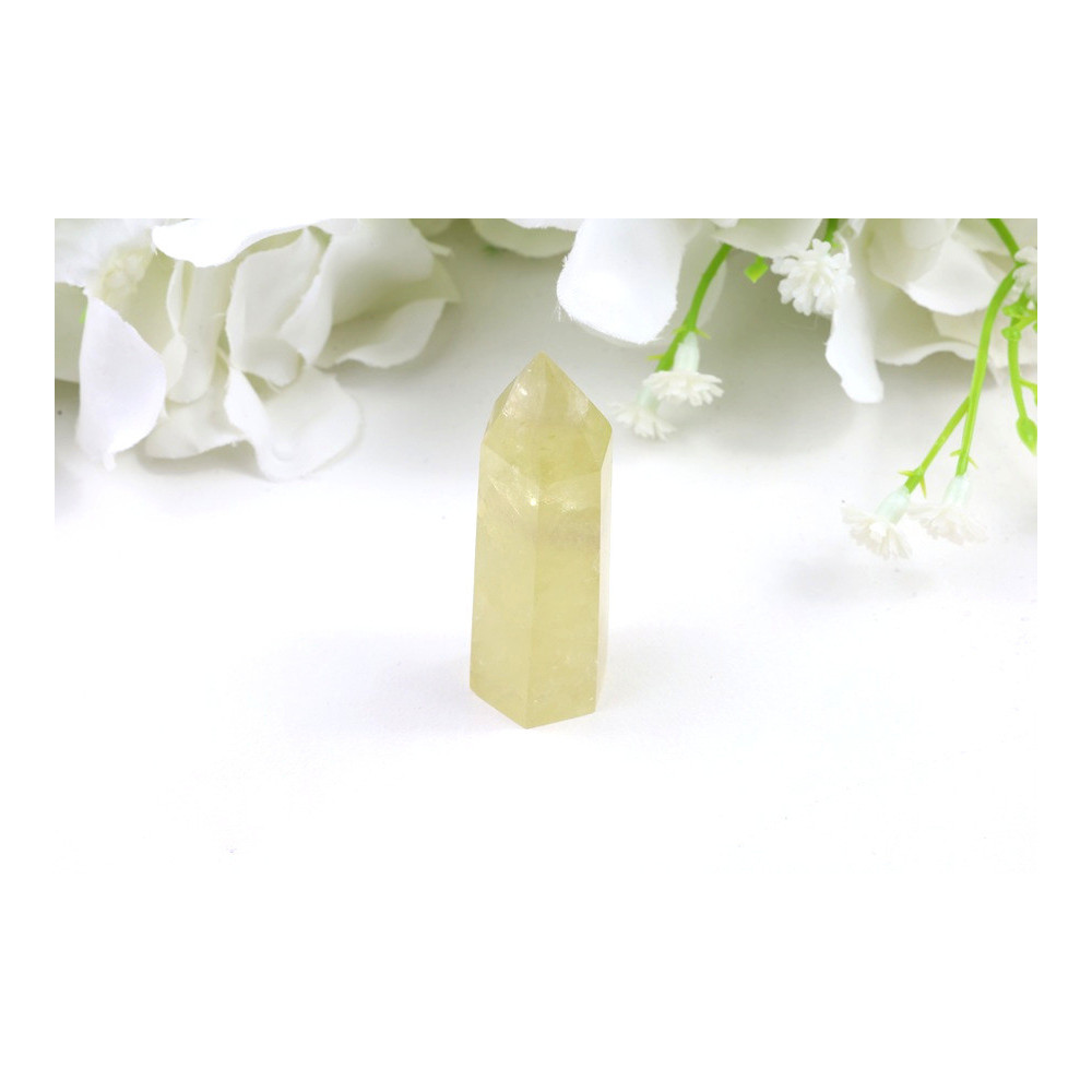 Tento elegantní citrínový obelisk o rozměrech 56x18x15 mm zaujme svou světle zlatožlutou barvou s jemným medovým odstínem. Kámen je leštěn do vysokého lesku, který zdůrazňuje jeho čistotu a průhlednost. Povrch obeliskuje hladký a jemný na dotek, s přirozenýmiinkluzemi typickými pro přírodní citrín. Špička je precizně opracována do elegantního tvaru, celkový vzhled je harmonický a vyvážený.