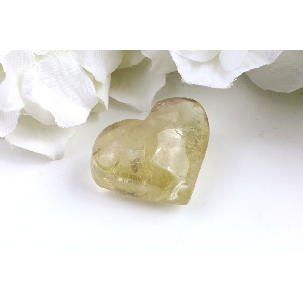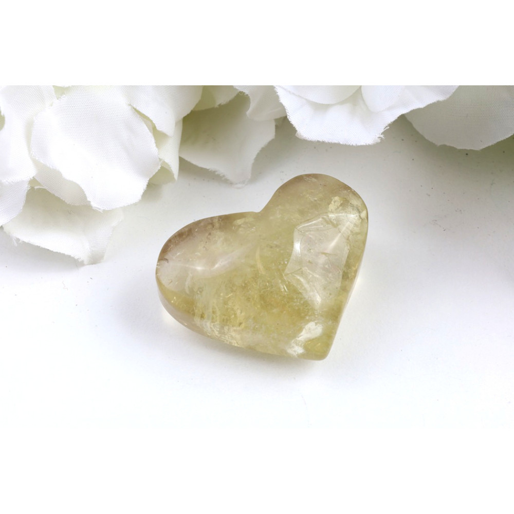 Toto nádherné leštěné srdce z citrínu č. 1533 upoutá pozornost svou teplou, medovou barvou, která se pohybuje od světle žluté až po jemné zlatavé tóny. Jeho povrch je dokonale hladký a lesklý, odrážející světlo s jemným třpytem, který podtrhuje jeho průsvitnou strukturu. Uvnitř kamene můžete pozorovat decentní vnitřní kresbu a inkluze, které vytvářejí jedinečný vizuální efekt, jako by se uvnitř kamene vznášely mlhavé závoje, a dodávají mu hloubku a charakter.