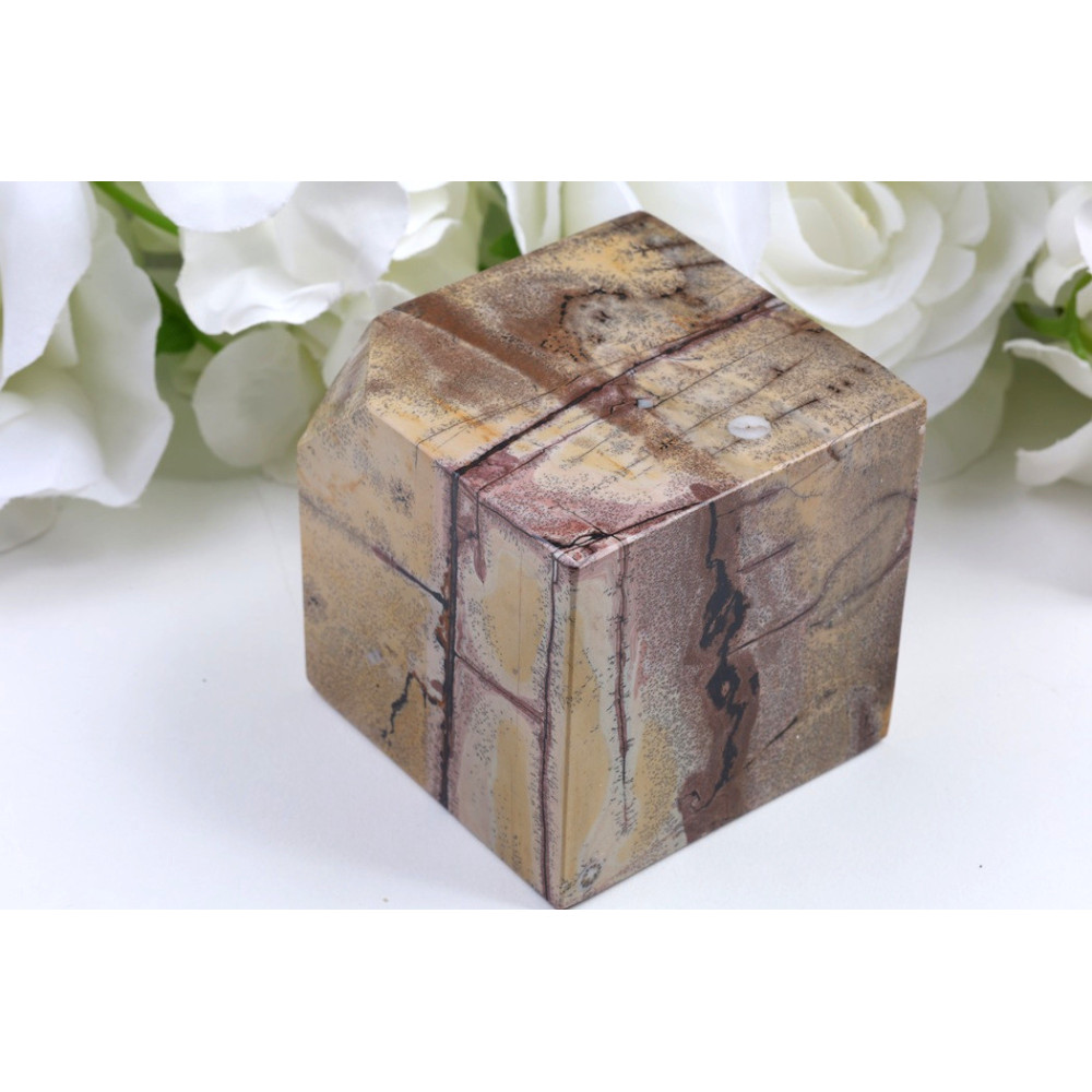 Kostka z obrázkového jaspisu je ideálním dekoračním prvkem do obývacího pokoje, pracovny nebo meditačního prostoru. Díky své dokonalé kubické formě vyniká jako solitérní kus v interiéru, nebo jako součást minerální sbírky. Můžete ji využít jako elegantní těžítko na dokumenty, ozdobu knihovny či stolku. Při meditaci ji lze držet v rukou nebo umístit do svého osobního meditačního prostoru pro prohloubení zážitku.