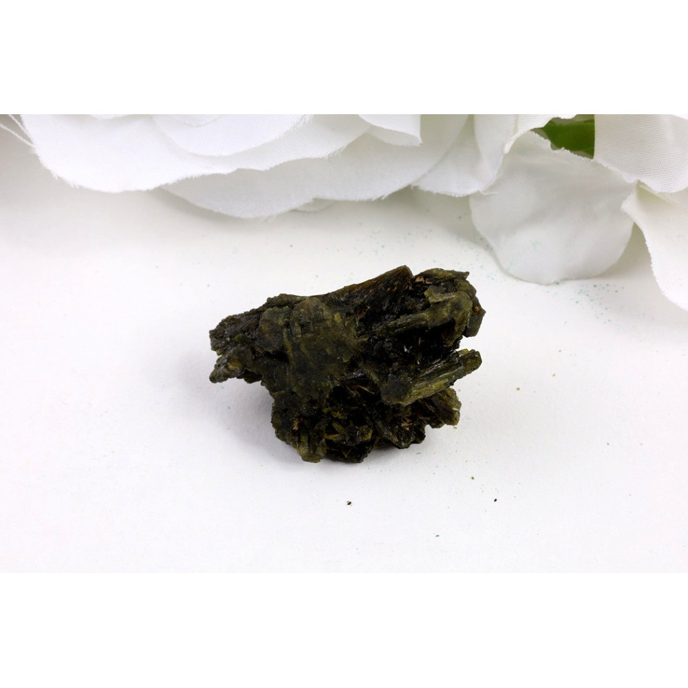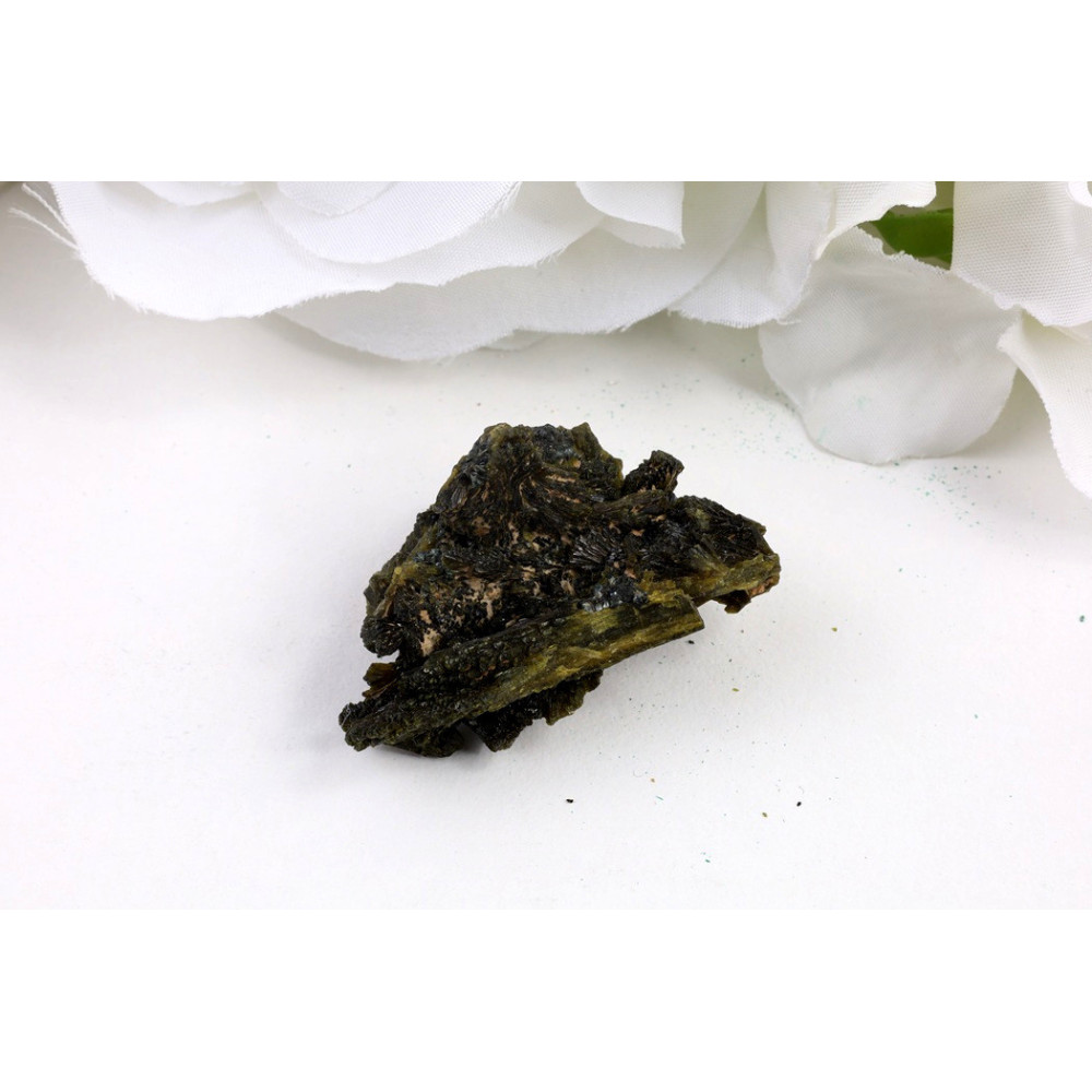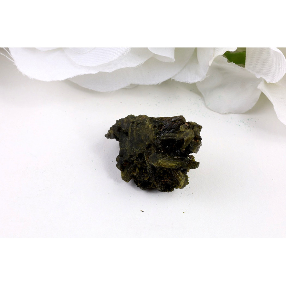 Přidejte si tento unikátní kus epidotu z pákistánského Balúčistánu do své sbírky a nechte se okouzlit jeho tajemnou tmavou krásou a kovovým leskem. Každý kámen je originál a právě tento kus s kompaktní strukturou a elegantním vzhledem může být vaším osobním průvodcem na cestě za harmonií a vnitřní silou.