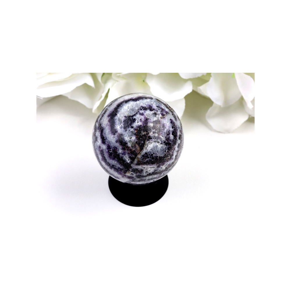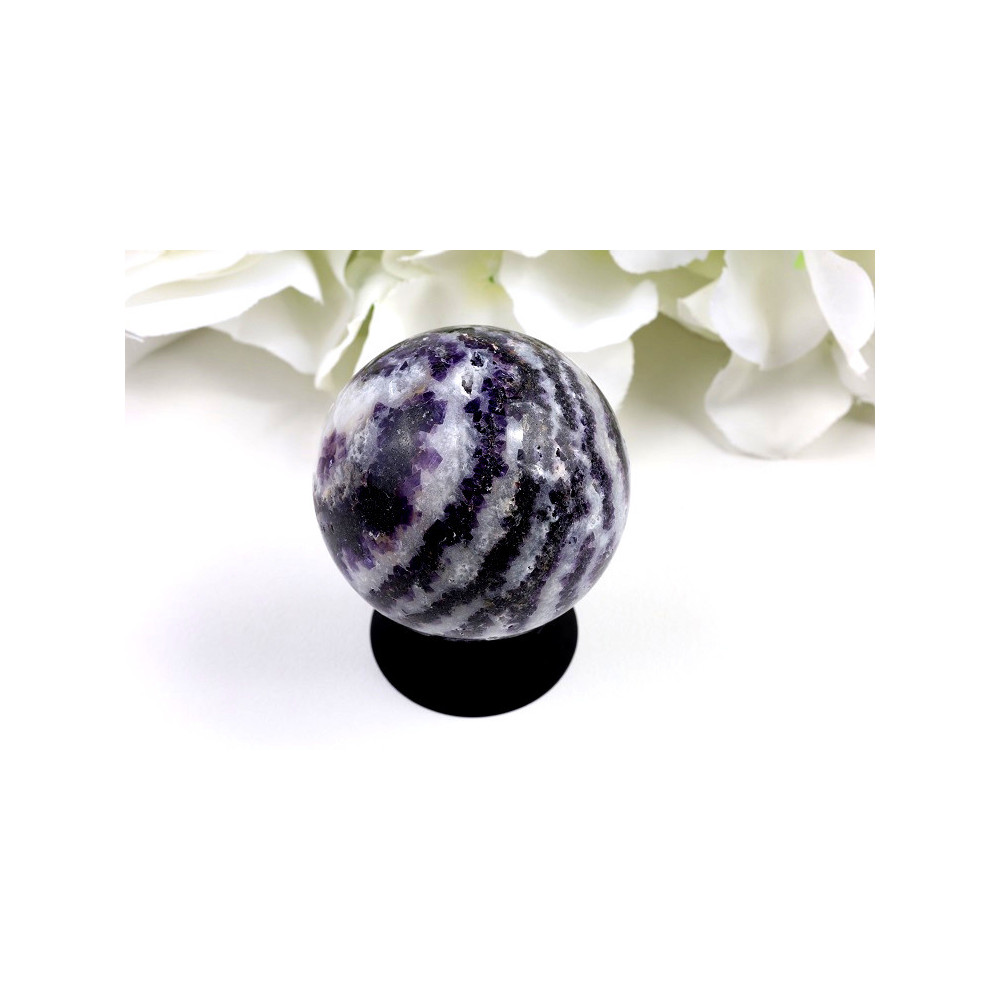 Představujeme vám elegantní kouli z Zebra fluoritu, která zaujme svým jedinečným pruhovaným vzorem. Tento přírodní kámen pochází z Číny a nabízí fascinující kombinaci barev – od jemných fialových a šedých tónů po krémově bílé pruhy, které vytvářejí charakteristický zebří design.