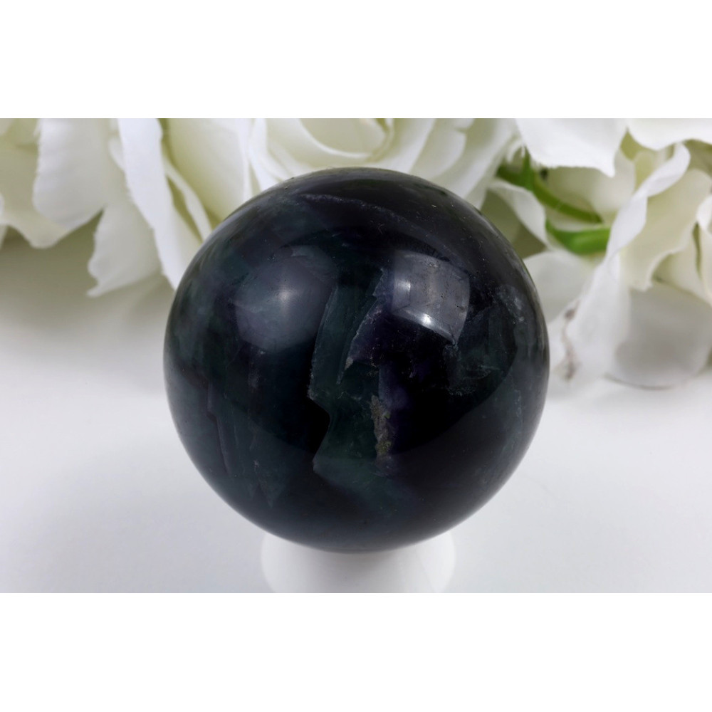 Fluorit je relativně měkký minerál, proto s ním zacházejte opatrně a chraňte jej před pádem a nárazy. K čištění používejte jemný vlhký hadřík, vyhněte se chemickým čistícím prostředkům. Uchovávejte kouli na bezpečném místě, kde je chráněna před přímým slunečním zářením a prudkými teplotními změnami. Pravidelné jemné omytí vodou pomůže udržet její krásný lesk.
