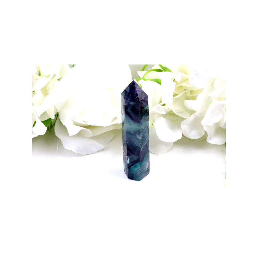 Tento nádherný fluorit obelisk zaujme na první pohled svou jedinečnou barevností a elegantním tvarem. Kámen má klasickou šestibokou hranolovou formu zakončenou špičkou, která je dokonale vybroušena do hladkého povrchu. Dominantní jsou úchvatné modro-fialové odstíny doplněné jemnými tyrkysovými a zelenými pásy, které vytvářejí charakteristické pruhování typické pro kvalitní fluorit. Průsvitná struktura kamene umožňuje procházet světlu a odhaluje fascinující vnitřní krystalickou stavbu. Každý úhel pohledu odhaluje nové barevné nuance, které činí tento kus skutečně výjimečným a nezaměnitelným.
