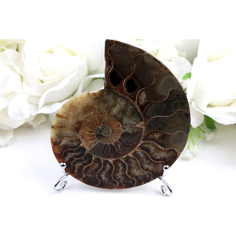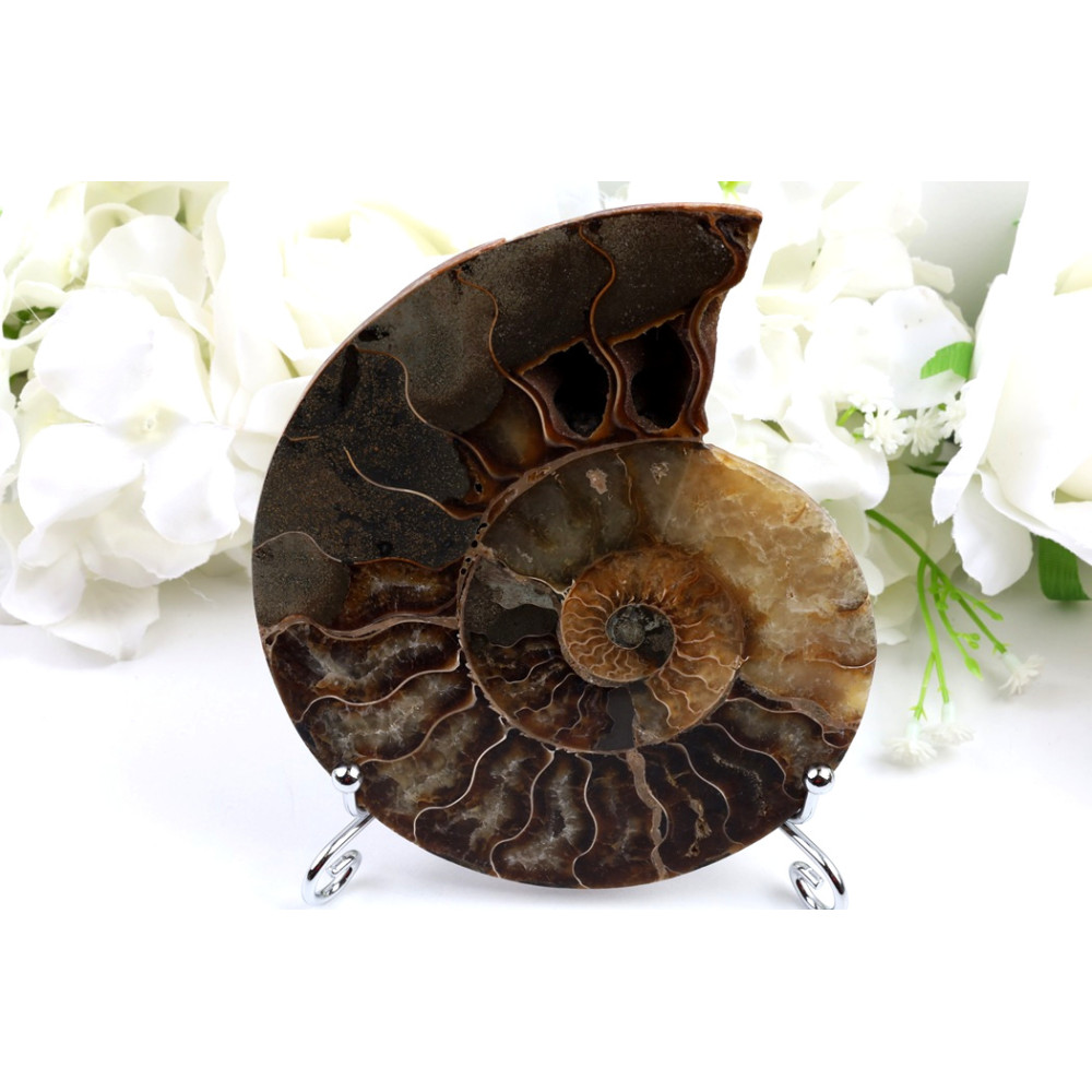 Tento leštěný řez amonitu č.1490 je ohromujícím dekorativním prvkem, který dodá nádech historie a mystiky každému interiéru. Skvěle se bude vyjímat na polici v obývacím pokoji, na pracovním stole v kanceláři, nebo jako centrální bod v meditačním koutku, kde jeho energie pomůže vytvořit klidnou a inspirativní atmosféru. Jeho unikátní spirálovitý tvar a přírodní kresba z něj dělají umělecké dílo samotné přírody, které upoutá pozornost a podnítí konverzaci.