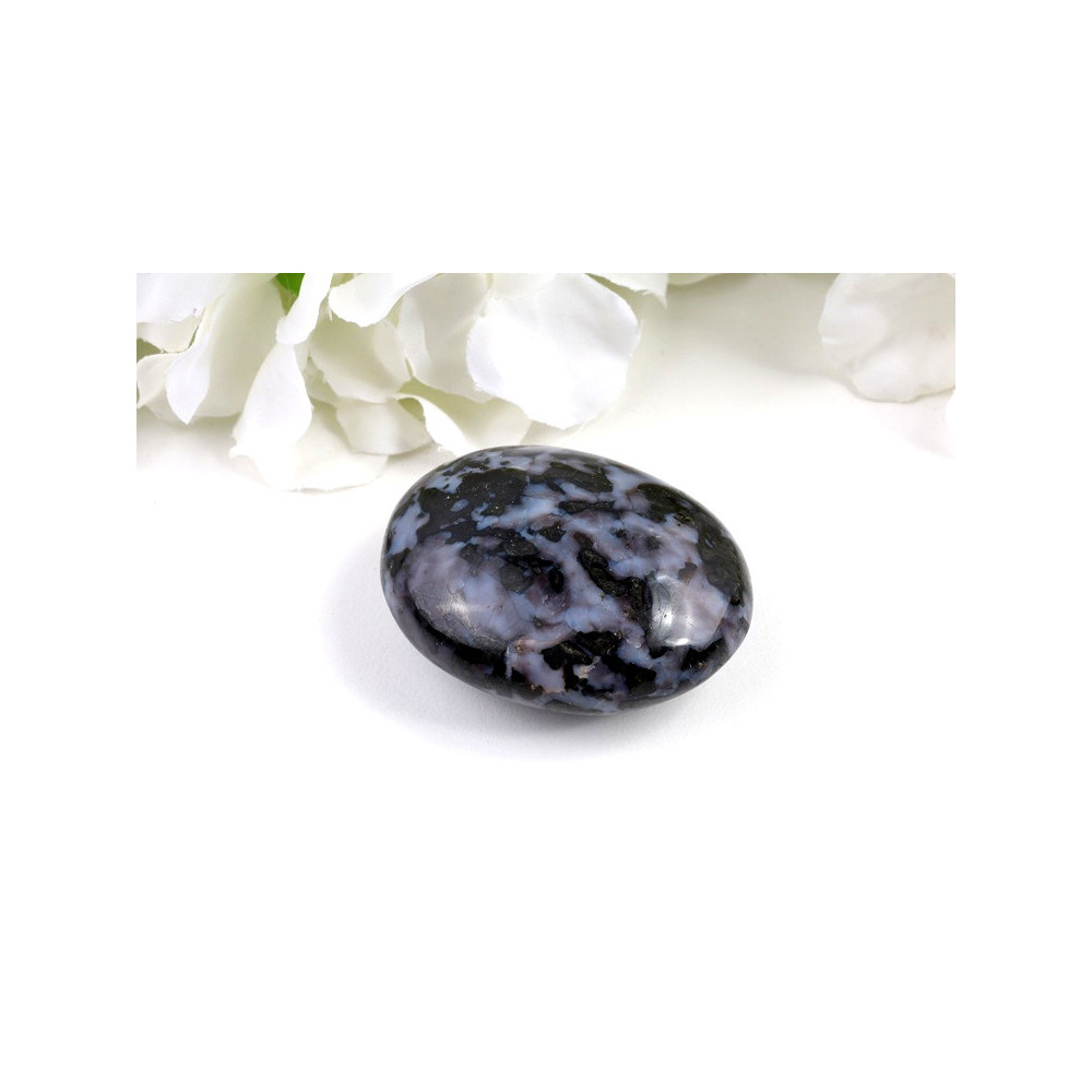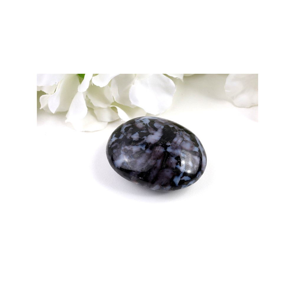 Hmatka zaujme svým dokonale leštěným povrchem, který odráží světlo a vytváří příjemný hodnotný lesk. Kámen má typickou šedo-černou barvu gabra s jemnými laverýnými přechody. Povrch je hladký a příjemný na dotek, oválný tvar dokonale sedne do dlaně. Kompaktní rozměry 56x44x24 mm činí z této hmatky praktického společníka pro denní nošení i meditační praxi. Díky hmotnosti 94 gramů má kámen příjemnou tíhu, která dává pocit stability a pevnosti.