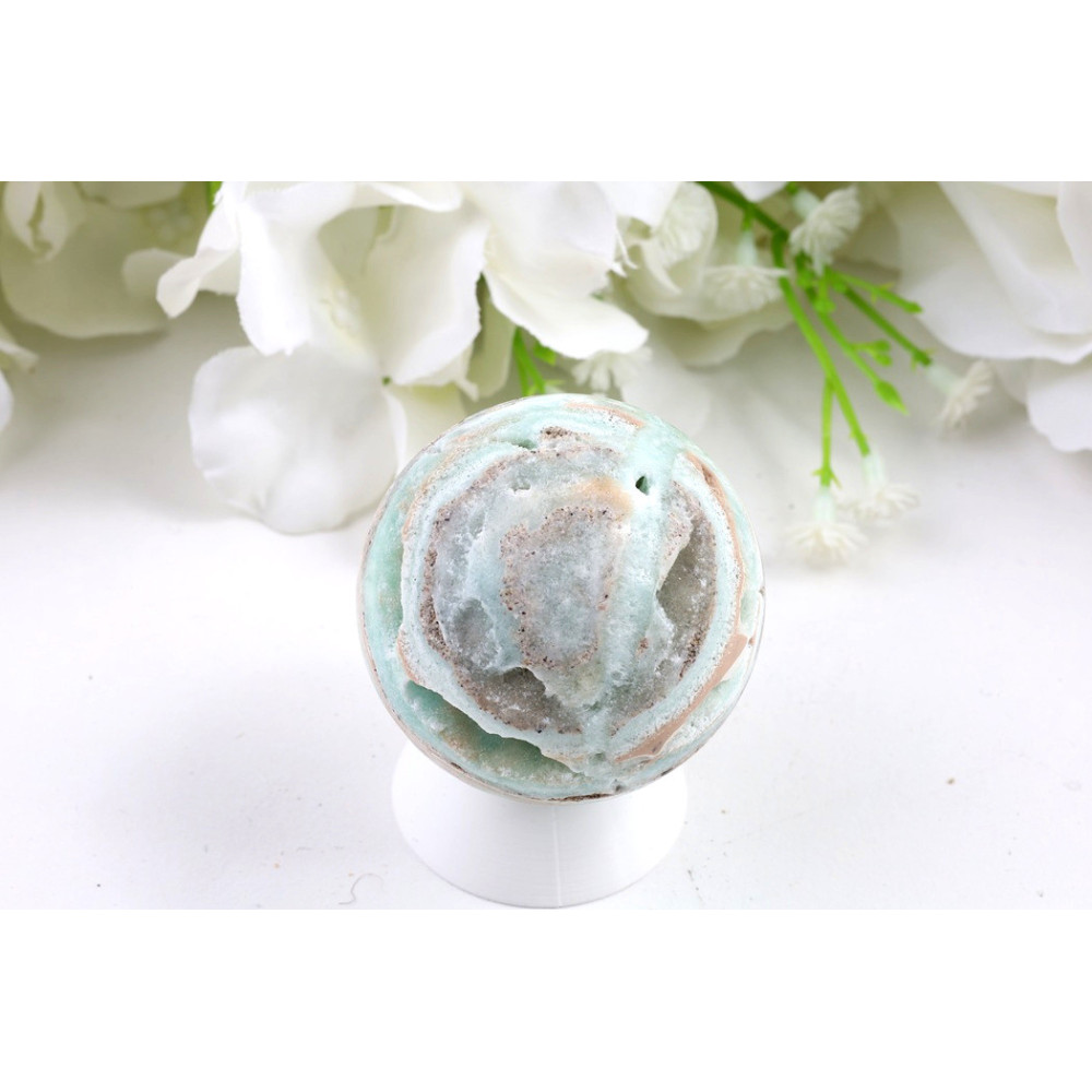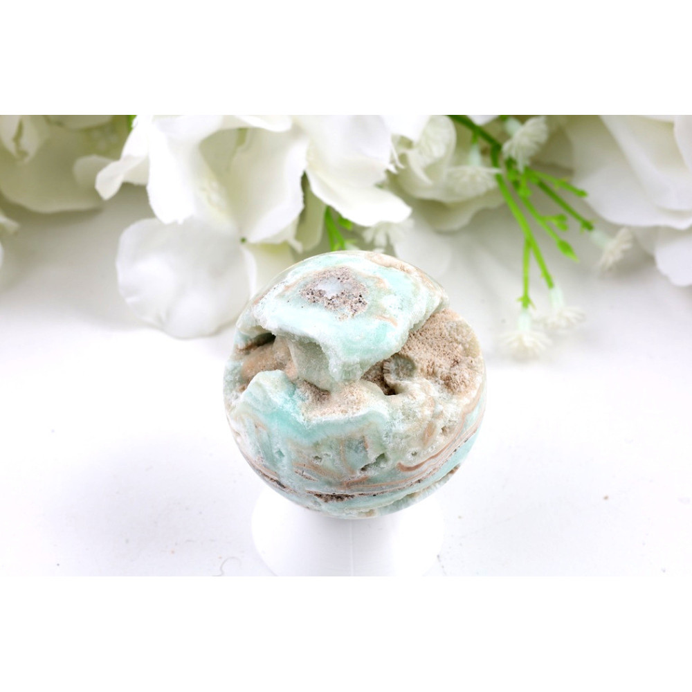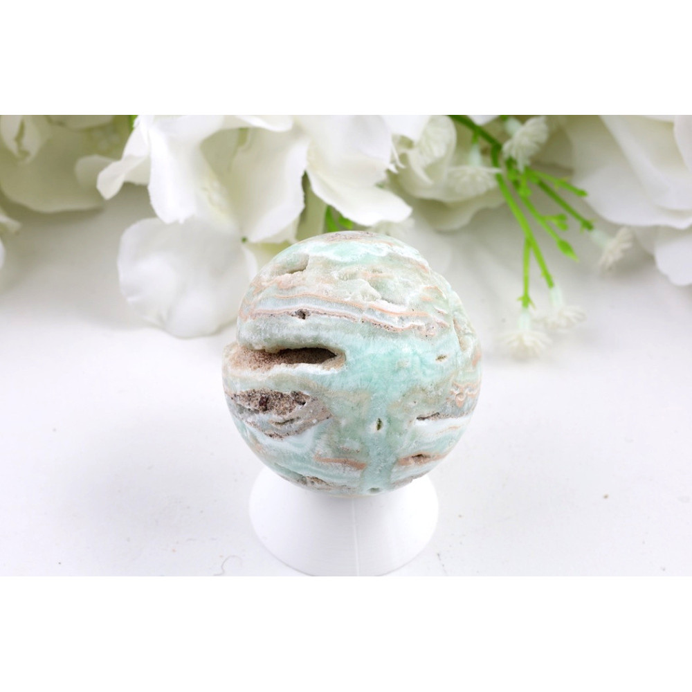 Tato překrásná koule hemimorfitu je originální přírodní výtvor, který nemá v naší nabídce obdobu. Pokud hledáte kvalitní minerál s harmonickou energií a okouzlujícím vzhledem, je tato koule tou pravou volbou. Nenechte si ujít tuto příležitost a obohaťte svůj domov nebo sbírku o tento výjimečný kus.