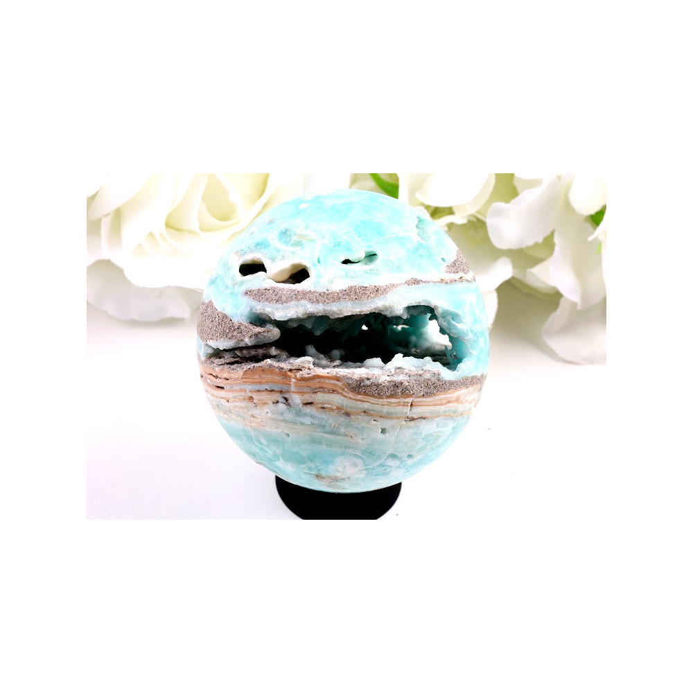 Struktura hemimorfitu je charakteristická jemnými vrstvami a plochami, které vytvářejí přirozeně organické vzory. Každá koule je jedinečná – díky přírodnímu původu kamene se mohou vyskytovat jemné variace v barvě, struktuře a vzorech, což je přirozenou součástí kouzla tohoto minerálu a činí každý kus originálním.