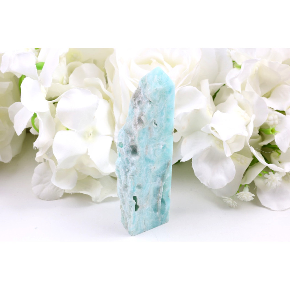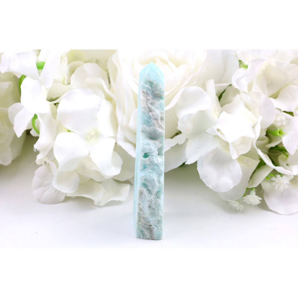 Tato elegantní věž z hemimorfitu představuje skvělý dekorativní prvek, který vnese do jakéhokoli interiéru – ať už jde o váš domov, kancelář, nebo meditační koutek – pocit svěžesti a klidu. Její uklidňující modrá barva a ušlechtilý tvar ji činí ideálním doplňkem pro umístění na polici, psací stůl, noční stolek nebo jako součást oltáře, kde bude působit jako vizuální a energetická kotva klidu. Je to také nádherný a smysluplný dárek, který potěší každou ženu – partnerku, maminku, kamarádku či kolegyni, která ocení přírodní krásu a pozitivní vibrace kamenů.