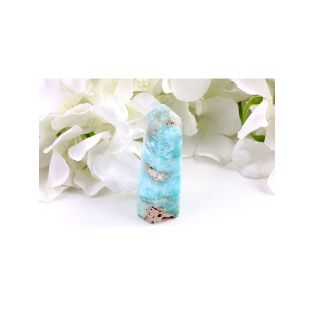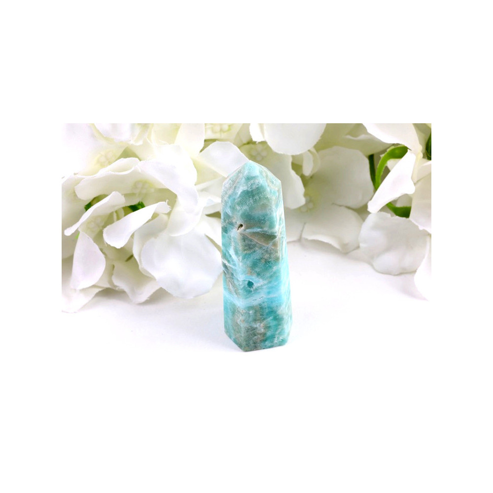 Tento elegantní obelisk se vyznačuje klasickým tvarem s hexagonální špicí, který dodává kameni na vznešenosti a harmonii. Hemimorfit září v něžných odstínech modré barvy, které připomínají čistou oblohu nebo hladinu klidného jezera. Díky pečlivě leštěnému povrchu kámen krásně odráží světlo a zdůrazňuje přírodní krásu minerálu. Každý detail tohoto obelisku odhaluje jedinečné přírodní vzorování a strukturu, která činí každý kus zcela originálním. Kompaktní rozměry umožňují snadné umístění na pracovní stůl, do meditačního prostoru nebo mezi vaše oblíbené krystalické poklady.