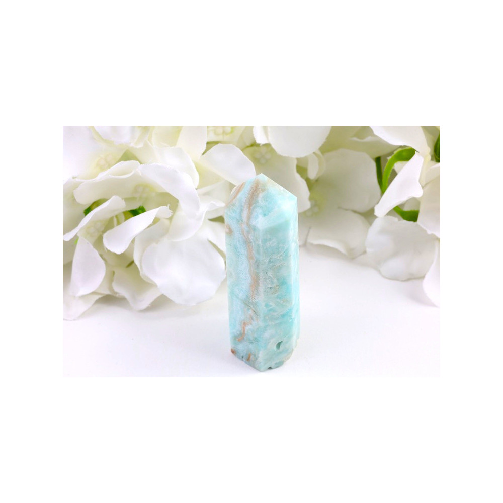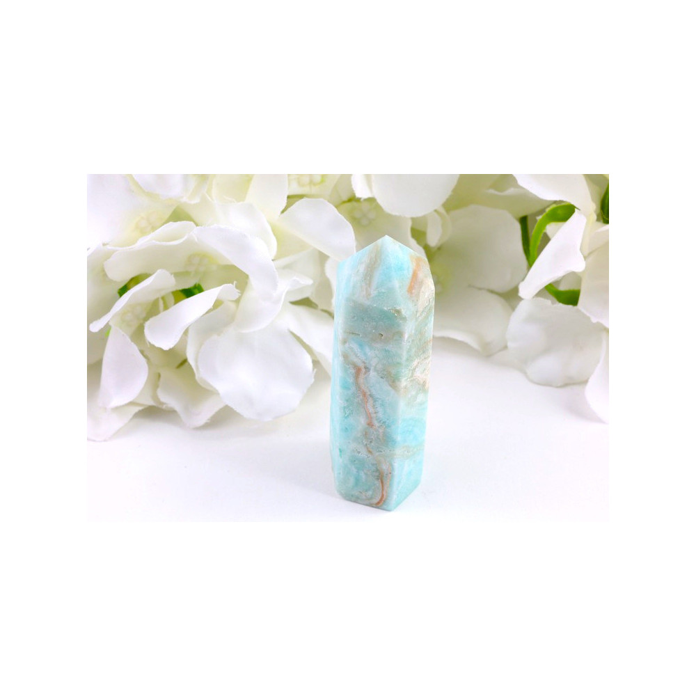 Čtyřstranný tvar obelisk je precizně opracován, hrany jsou ostré a čisté, což podtrhuje řemeslnou kvalitu zpracování. Intenzivní modrý tón přechází v jemnějších odstínech, které vytvářejí přirozený minerální charakter kamene. Každý detail tohoto hemimorfitu svědčí o jeho přírodní kráse a jedinečnosti.