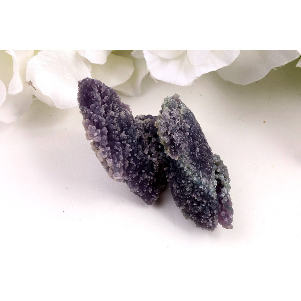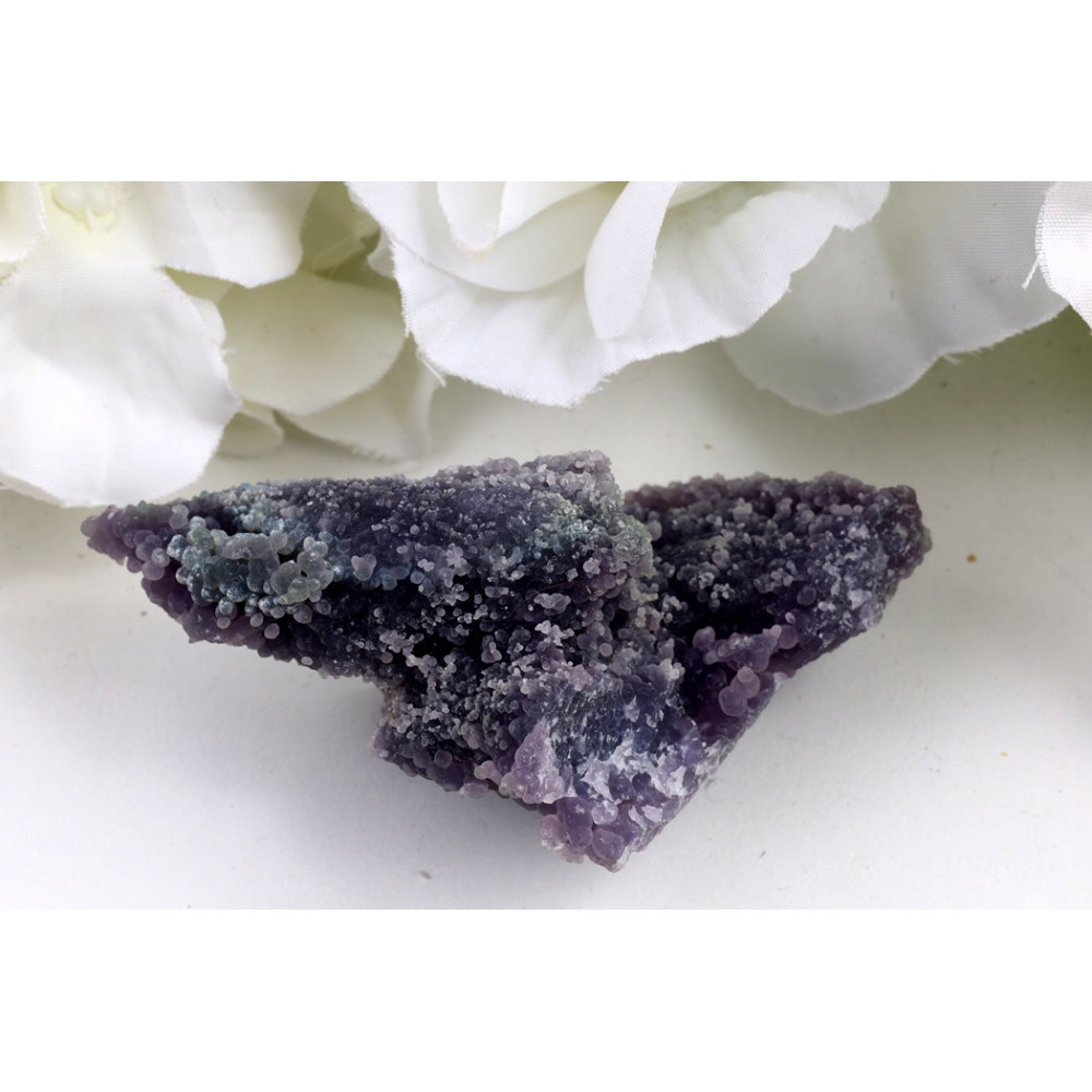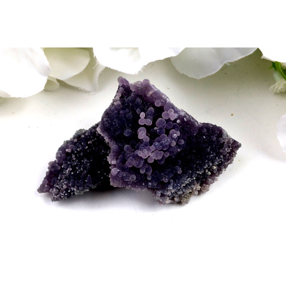 Tento fascinující přírodní minerál je ve skutečnosti odrůdou chalcedonu, což je mikrokrystalická forma křemene. Jeho charakteristická hroznovitá forma vzniká postupným usazováním minerálních roztoků v dutinách vulkanických hornin. Okouzlující fialové odstíny jsou obvykle způsobeny mikroskopickými inkluzemi manganu nebo jiných prvků v krystalové mřížce.