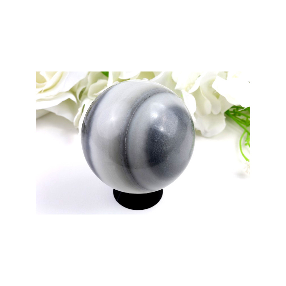 Tato velká, ručně leštěná koule z pravého Taiji jadeitu představuje mimořádný přírodní klenot z Číny. Vyniká svým elegantním kulatým tvarem a jemně lesklým povrchem, na kterém se odrážejí různorodé odstíny zelenkavé, bílé a šedavé barvy s atraktivními žilkami a originální kresbou kamene. Unikátní textura a přechody barev dodávají kouli nezaměnitelný vzhled. Každý kus je zcela originální.
