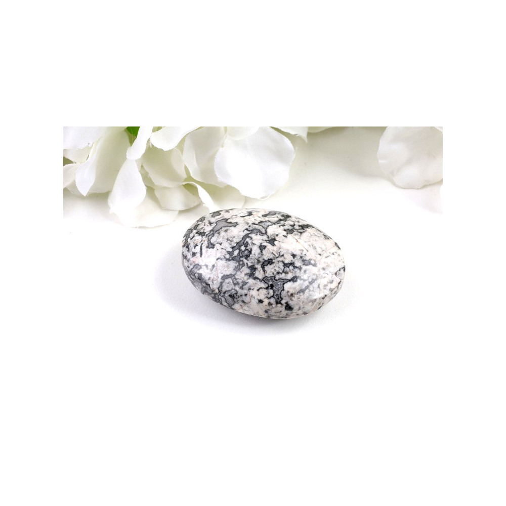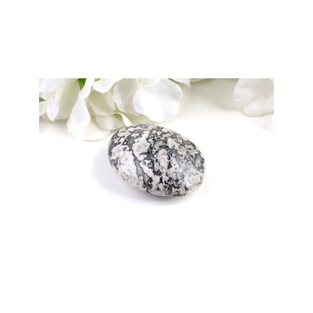 Tato hmatka z Picasso kamene zaujme na první pohled svým uměle vybroušeným do hladkých rovnoměrných tvarů, což umožňuje příjemný dotek a pohodlné uchopení v ruce. Povrch kamene je pečlivě vybroušen a vyleštěn do vysokého lesku, který zvýrazňuje charakteristické šedo-černo-bílé až krémové vzory připomínající abstraktní malbu. Barvy se jemně prolínají a vytvářejí nezaměnitelnou estetiku, která okouzlí každého milovníka minerálů a přírodní krásy.