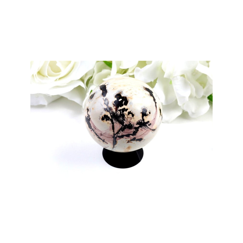 Tato nádherná koule z obrázkového jaspisu nabízí široké spektrum využití. Jako dekorativní prvek dokonale doplní jakýkoliv interiér – ať už moderní minimalistický prostor, kde působí jako výrazný solitérní kus, nebo eklektické prostředí plné přírodních materiálů. Umístěte ji na pracovní stůl, knihovnu, noční stolek nebo do meditačního koutu.