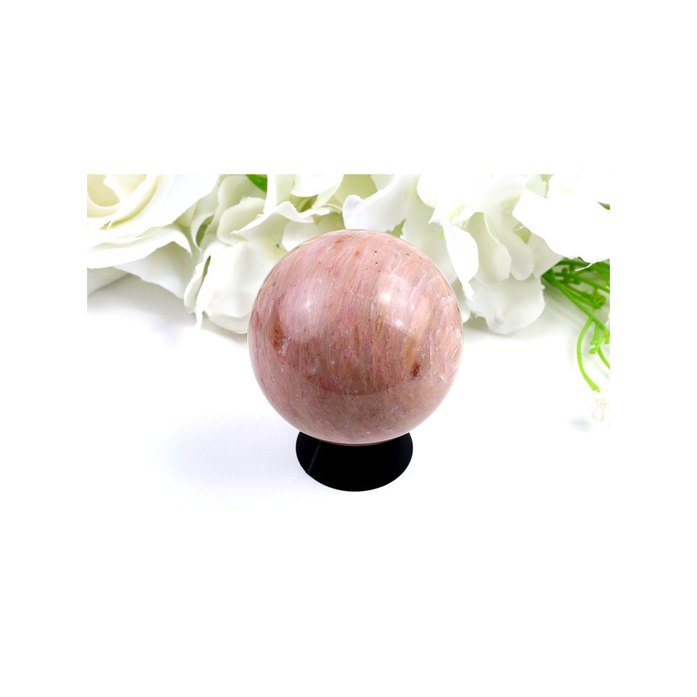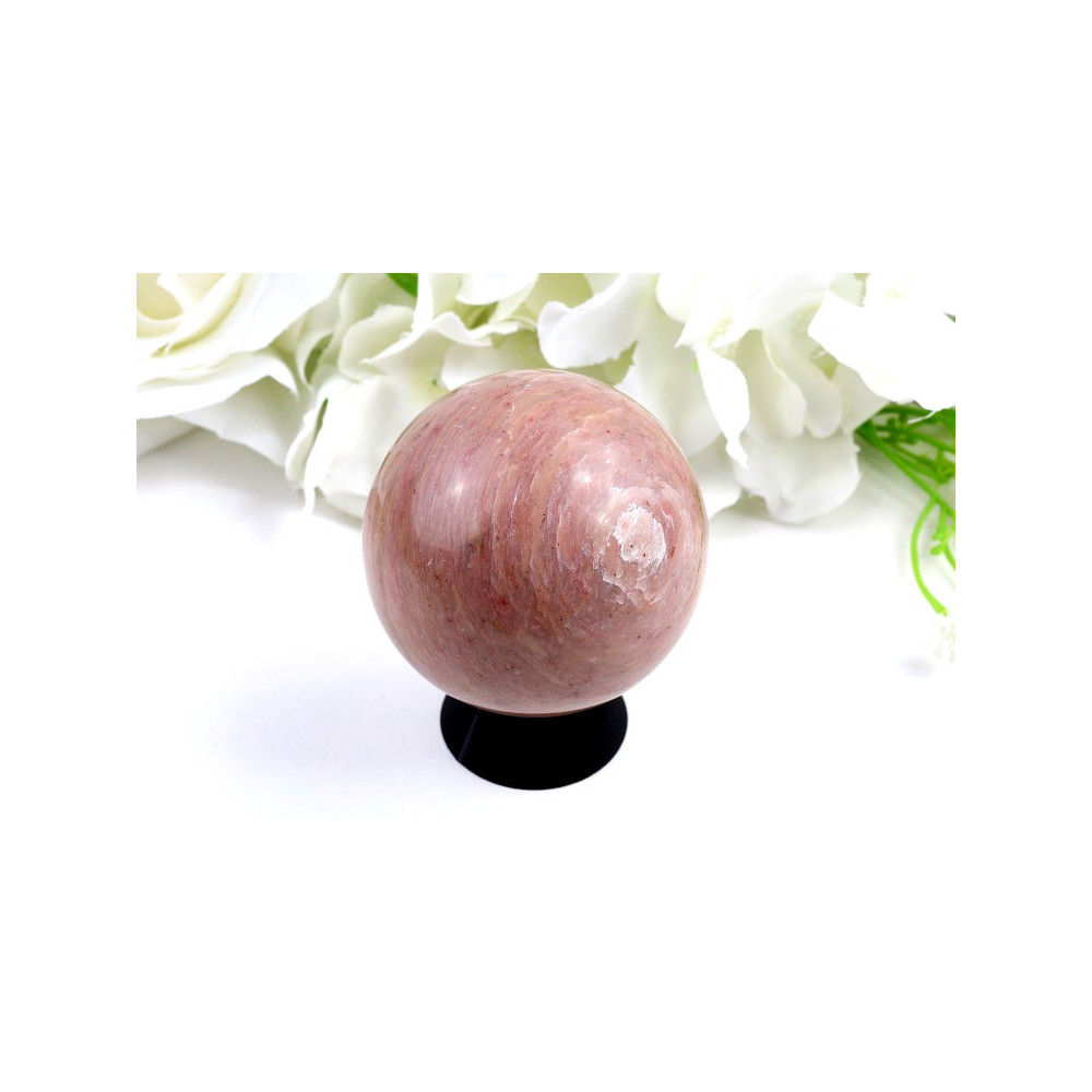Tato nádherná koule z růžového jaspisu je pravým skvostem pro milovníky minerálů a přírodních kamenů. Jemné růžové až pastelové tóny v kombinaci s jemnými bílými pruhy a kresbami vytváří jedinečný vzhled, který okouzlí na první pohled. Povrch koule je precizně leštěn do vysokého lesku, díky čemuž se její přirozená krása ještě více zvýrazní a kámen přímo září.