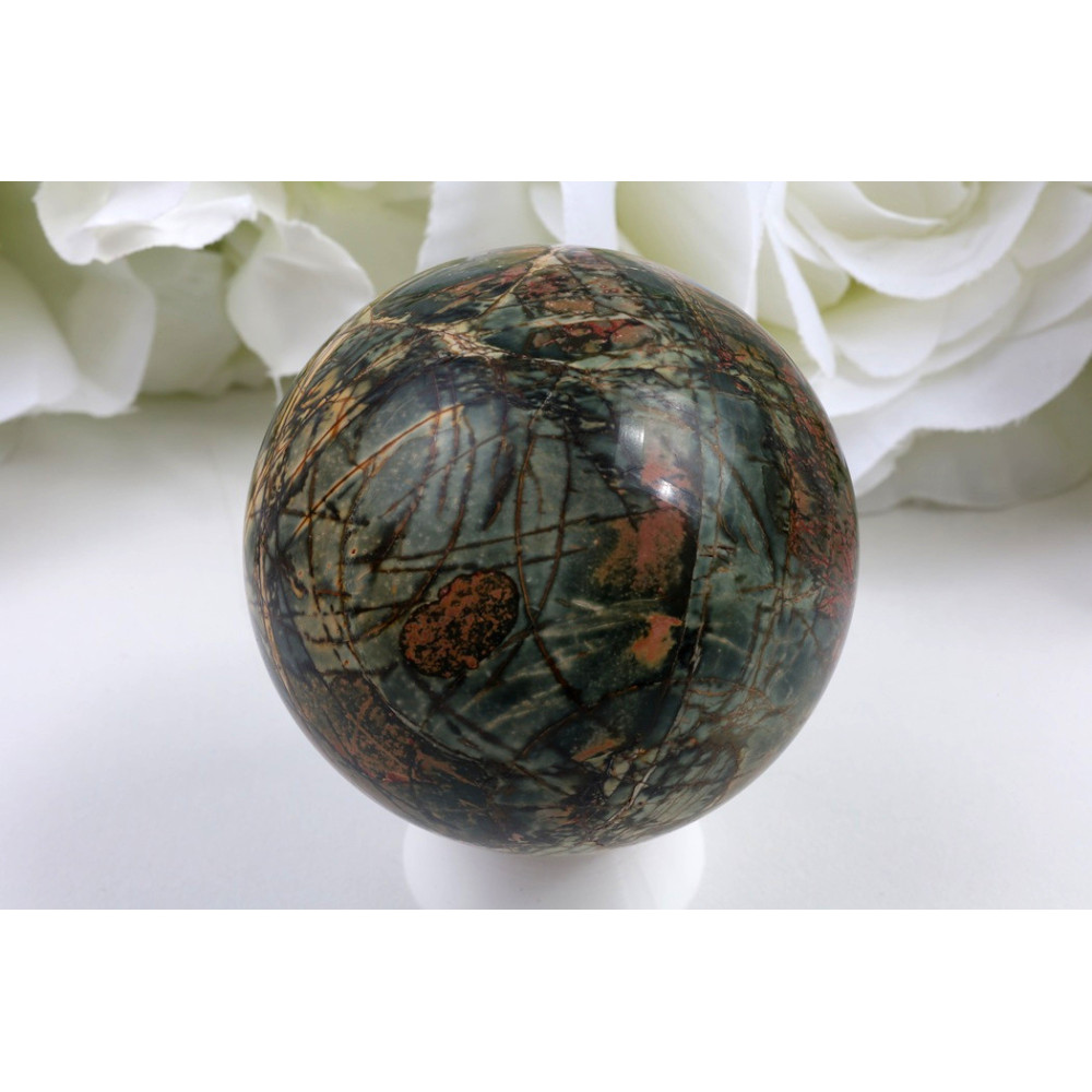 Tato koule creek jaspisu představuje jedinečný přírodní skarb, který okouzlí každého milovníka minerálů. Její dokonale vyleštěný povrch a hluboké zabarvení z ní činí výjimečný kus, který obohatí vaši sbírku nebo interiér. Nechte se okouzlit její přirozenou krásou a harmonickou energií, kterou do vašeho prostoru přinese.