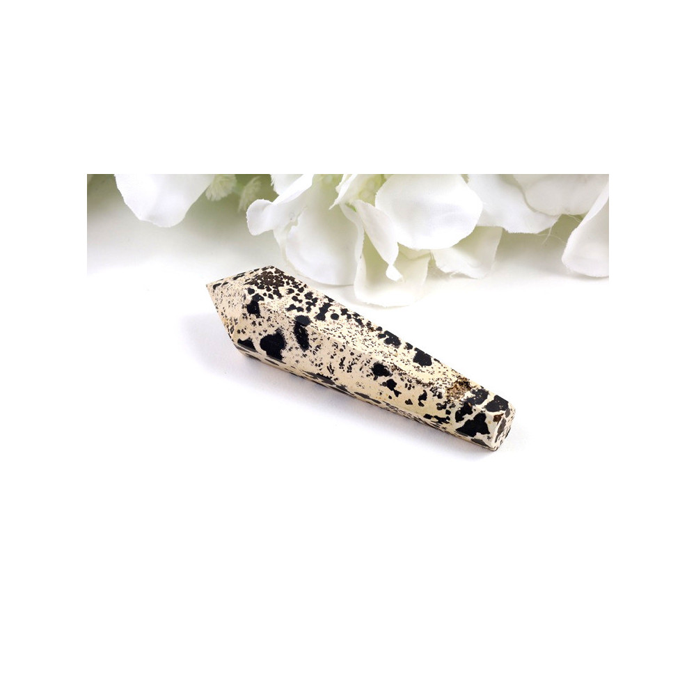 Tato elegantní hůlka okouzlí na první pohled svým nádherným přírodním vzorem. Základní barva kamene se pohybuje v teplých tónech béžové až krémové, které jsou působivě prostoupeny černými a tmavě hnědými skvrnami a kresbami. Právě tyto charakteristické obrazce připomínající krajinné scenérie daly obrázkového jaspisu jeho jméno. Každá hůlka je naprosto jedinečná, protože příroda nevytváří dva stejné vzory. Povrch kamene je vybroušen do dokonalého vysokého lesku, který podtrhuje krásu přírodního vzoru a příjemně odráží světlo. Válcovitý tvar s jemně zaoblenými konci zajišťuje pohodlné držení v ruce a umožňuje snadnou manipulaci při energetické práci.