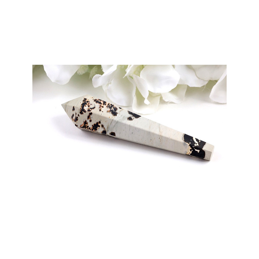 Tato elegantní hůlka z obrázkového jaspisu je skutečným přírodním uměleckým dílem. Kámen v teplých béžovo-hnědých tónech je protkán charakteristickými tmavě hnědými až černými vzory, které připomínají krajinné scenérie, jako by je namalovala sama příroda. Povrch je pečlivě vyleštěn do vysokého lesku, což zdůrazňuje krásu každého detailu a umožňuje naplno vyniknout jedinečné kresbě kamene. Válcovitý tvar s jemně zaoblenými konci umožňuje pohodlné držení a práci s tímto kamenem při meditacích či léčebných seancích.