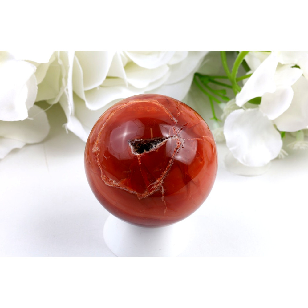 Tato nádherná koule z karneolu je zářivým kusem, který přinese vitalitu a radost do vašeho prostoru.