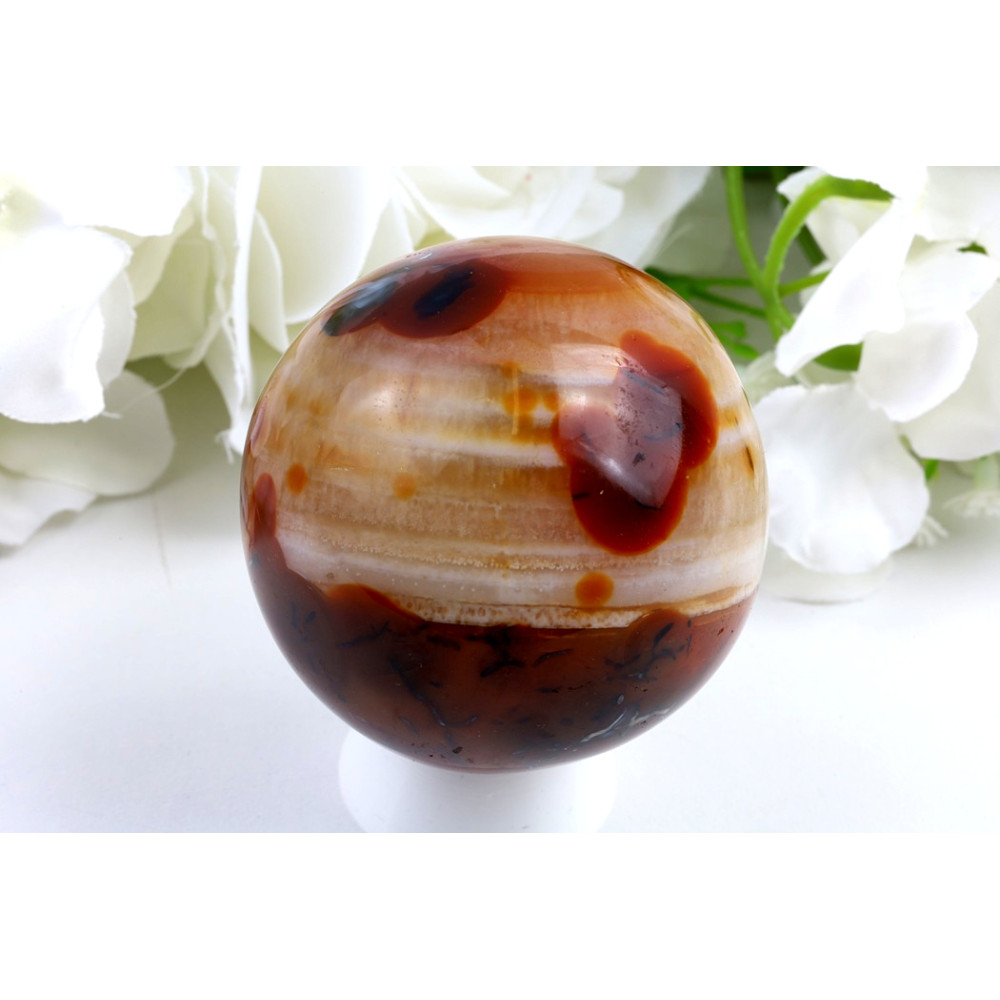 Tato nádherná koule z karneolu je zářivým symbolem energie a radosti.