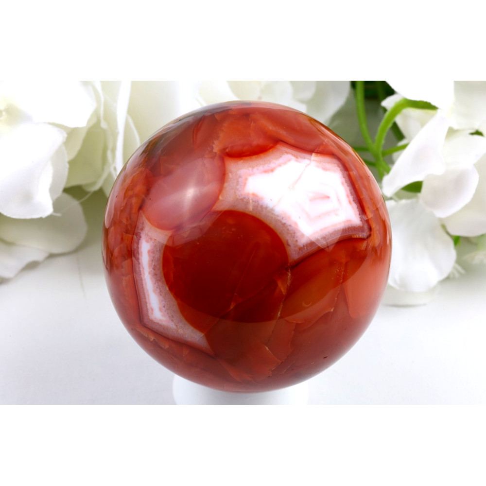 Tato nádherná koule z karneolu je zářivým symbolem životní energie a vášně, připravena rozzářit váš prostor.