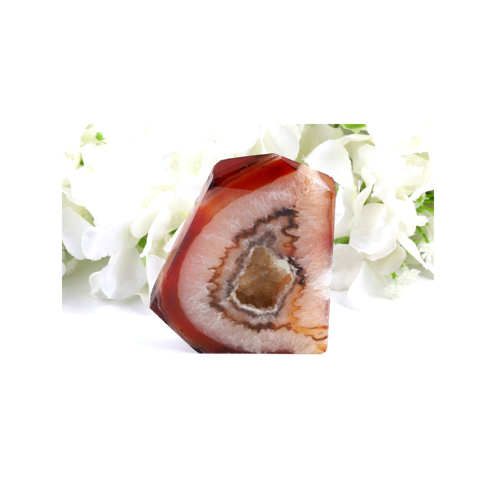 Karneol patří mezi oblíbené variety chalcedonu, který je součástí rodiny křemene. Tento minerál je známý svými teplými barvami od světle oranžové přes červenohnědou až po tmavě mahagonovou. Brazilský karneol je ceněn pro svou kvalitu a intenzitu zbarvení.