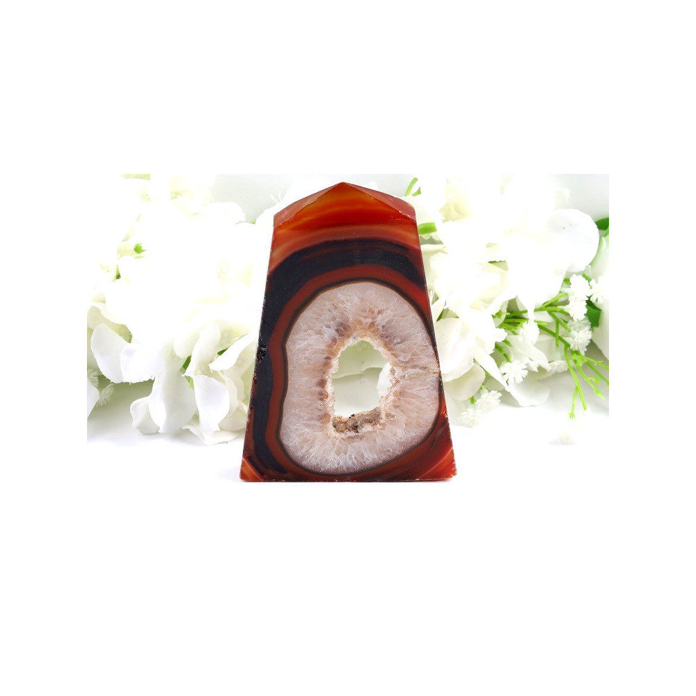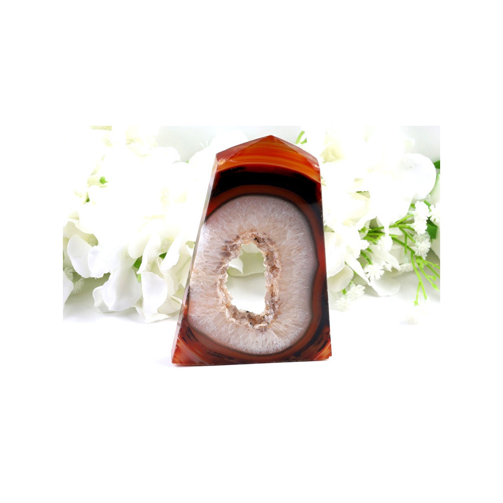 Karneolová špice s krystalickou drúzou - přírodní skvost z Brazílie