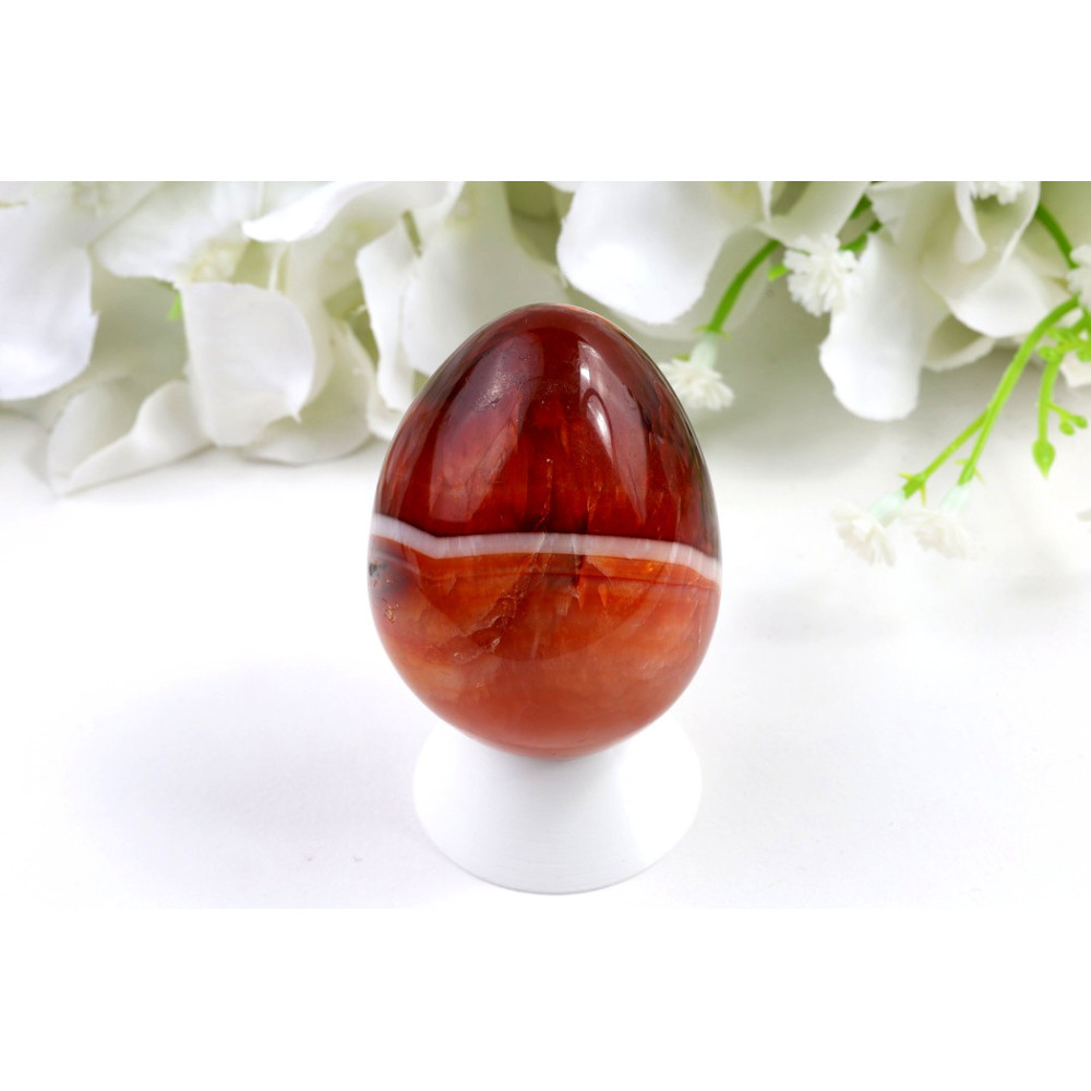 Leštěné vejce karneolu je univerzálním dekorativním předmětem, který najde své místo v interiéru i při osobním používání. Vejce lze umístit na pracovní stůl, do obývacího pokoje nebo ložnice jako estetický doplněk. Díky příjemnému tvaru vejce je vhodné pro meditaci, kdy lze kámen držet v dlani. Karneol se také používá při harmonizačních praktikách, kde slouží k vytváření příjemné atmosféry a k podpoře pozitivní energie v prostoru.
