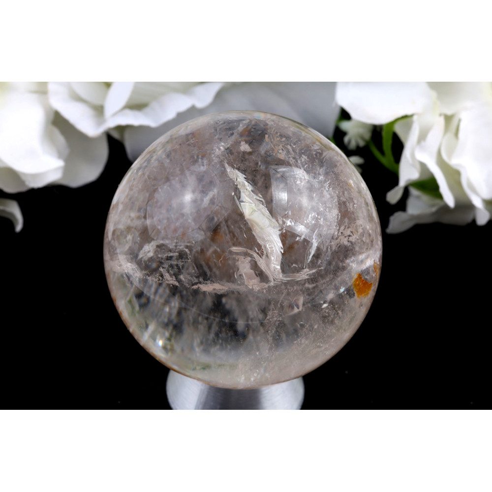 Tento minerál je chemicky oxid křemičitý (SiO₂) a patří do skupiny křemenů. Jeho krystalická struktura je trigonální, což mu propůjčuje schopnost přesně uspořádávat energii. Křišťál je známý svou tvrdostí 7 na Mohsově stupnici, což z něj činí odolný a trvanlivý kámen. Často obsahuje inkluze, jako jsou ty pozorované v této kouli, které mohou být tvořeny oxidy železa nebo jinými minerály a přidávají každému kusu unikátní charakter.
