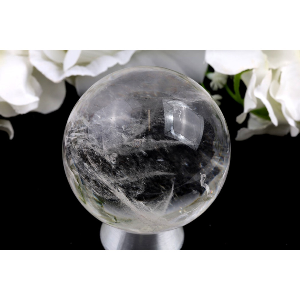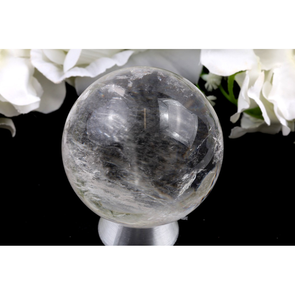 Tato úchvatná koule z křišťálu se pyšní výjimečnou čirostí, která umožňuje světlu tančit a vytvářet fascinující odlesky. Uvnitř kamene můžete pozorovat nádherné, jemné inkluze a prasklinky, které vytvářejí dojem mlhavých závojů a vnitřních krajin. Tyto přírodní nedokonalosti dodávají kusu jedinečný charakter a svědčí o jeho autentickém původu.