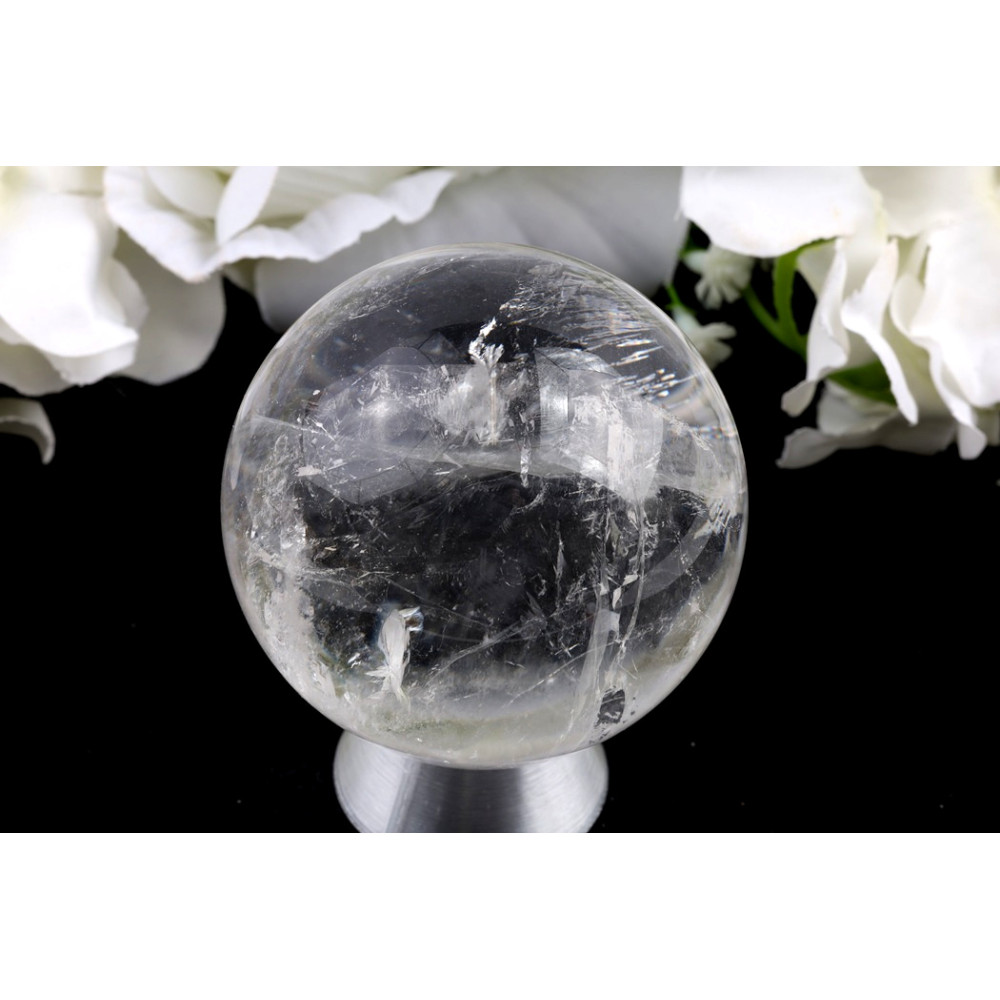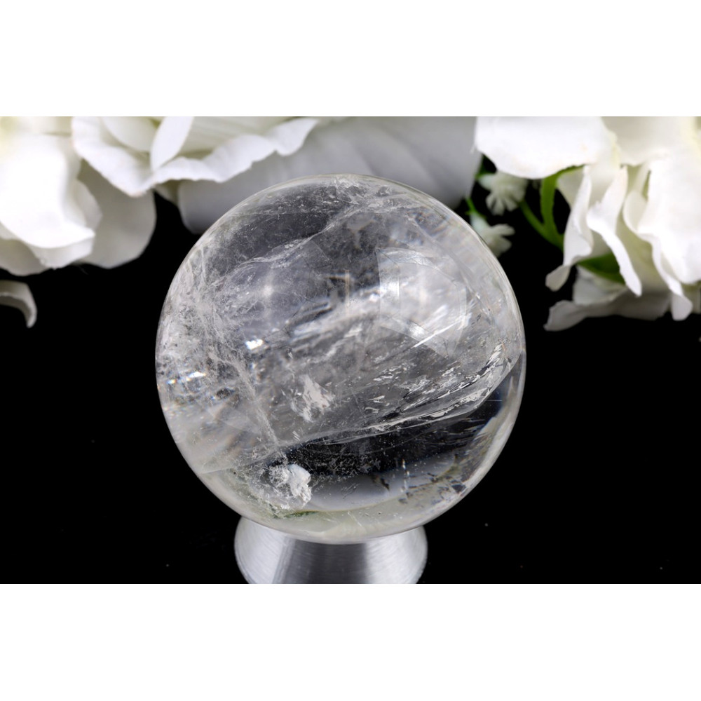 Tato křišťálová koule č. 1403 zaujme svou mimořádnou průzračností, která umožňuje pohled hluboko do jejího nitra. Zřetelně v ní lze spatřit fascinující vnitřní struktury a závoje, které nejsou vadou, nýbrž přirozenými inkluzemi vytvářejícími jedinečnou hru světla. Tyto prasklinky a bublinky odrážejí okolní světlo a dodávají kouli tajemný, téměř éterický vzhled, jako by v sobě skrývala prastaré příběhy Země.