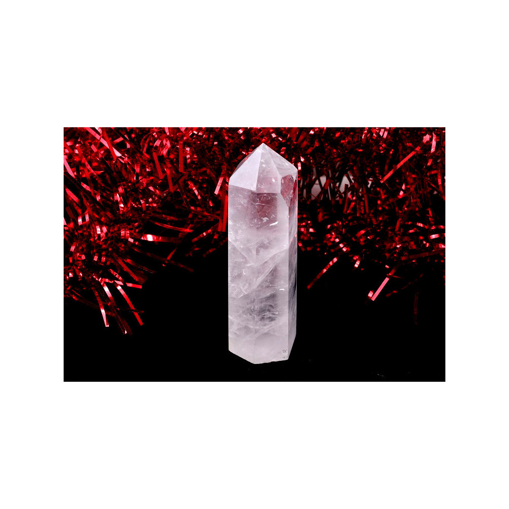 Tento nádherný křišťálový obelisk zaujme svou jemnou růžovo-bílou barvou, která evokuje něhu a harmonii. Kámen je pečlivě vybroušen do klasického tvaru obelisku s hexagonální špicí, která symbolizuje spojení se vyššími dimenzemi. Povrch je dokonale vyleštěn do lesklého provedení, což podtrhuje čistotu a průzračnost materiálu. Mléčně růžové odstíny se prolínají s čirými partiemi, vytvářejíce jedinečný vizuální efekt. Díky kompaktním rozměrům a elegantnímu tvaru se tento obelisk stane ozdobou každého prostoru a dokonalým nástrojem pro meditaci či energetickou práci.